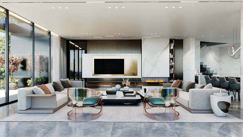 The Villa consists of three floors, high ceilings, luxurious finishes and highest quality appliances, spacious landscapes, roof garden.