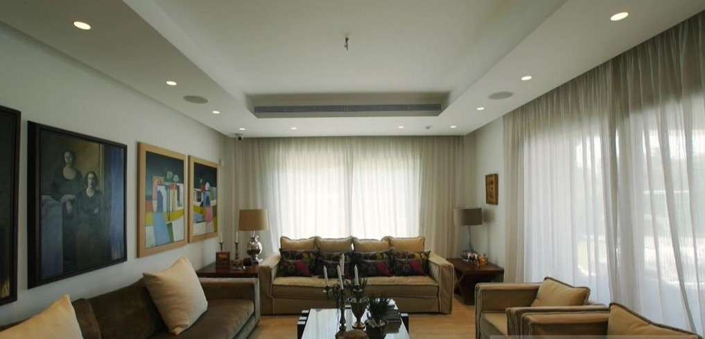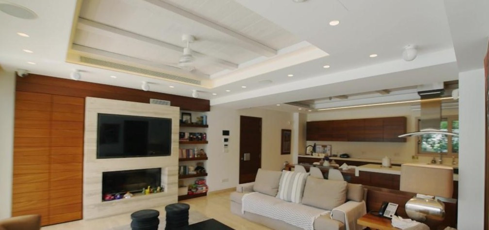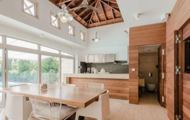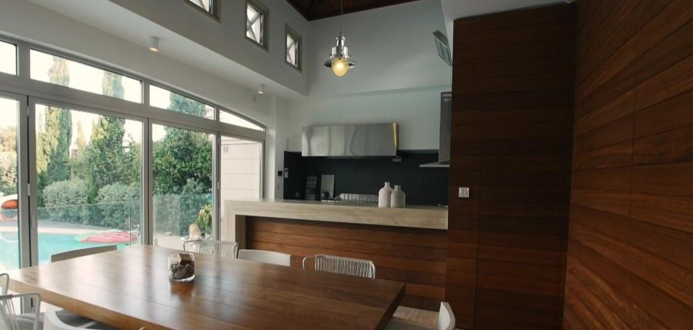 Spacious living & dining area with floor-to-ceiling windows and direct access to the pool terrace
