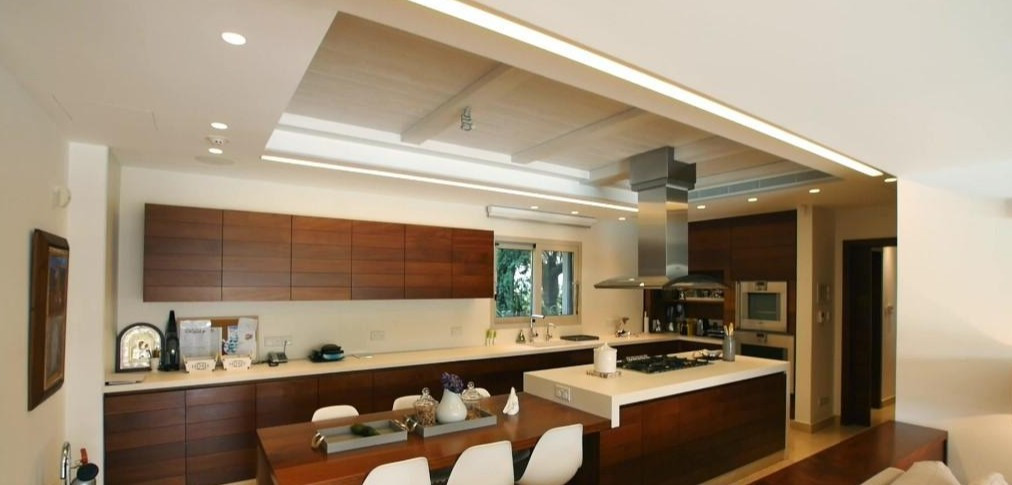 Fully equipped designer kitchen with high-end electrical appliances and breakfast area