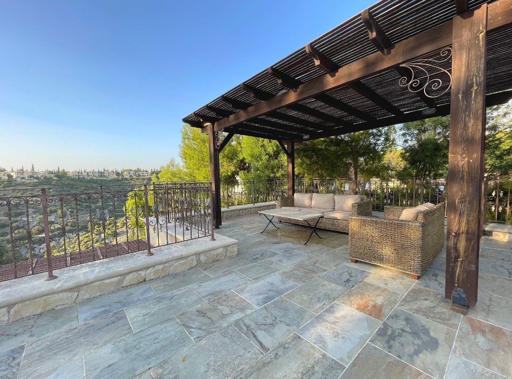 Five-bedroom house (No. 298) in Aphrodite Hills, Paphos. The villa is on two levels comprises of an entrance, living/dining area, kitchen with auxiliary kitchen, storage room, plant room, five bedrooms, verandas and garden .