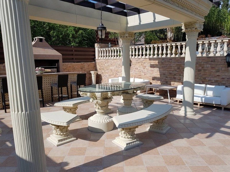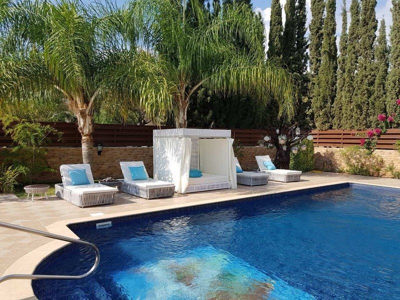 We are pleased to offer you this wonderful house located in one of the most prestigious areas of Agios Tychonas. A well-kept garden and a spacious area divided into 3 zones, barbecue, swimming pool and recreation area. There are 2 parking spaces and a storage room. Italian furniture and marble floors.