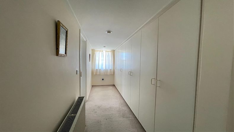 On the same level, there is a double garage, which features an electric gate.