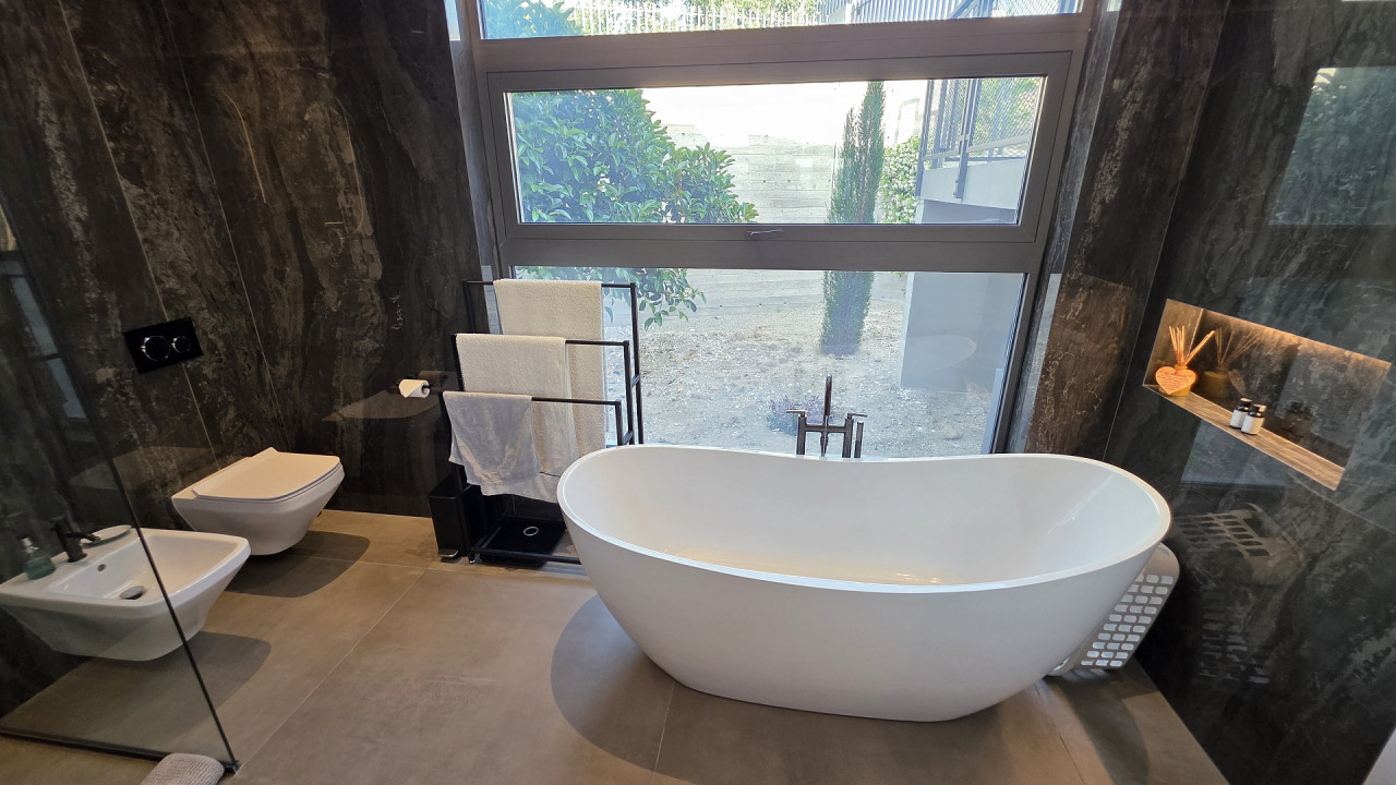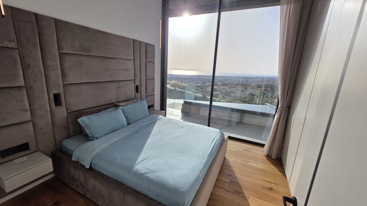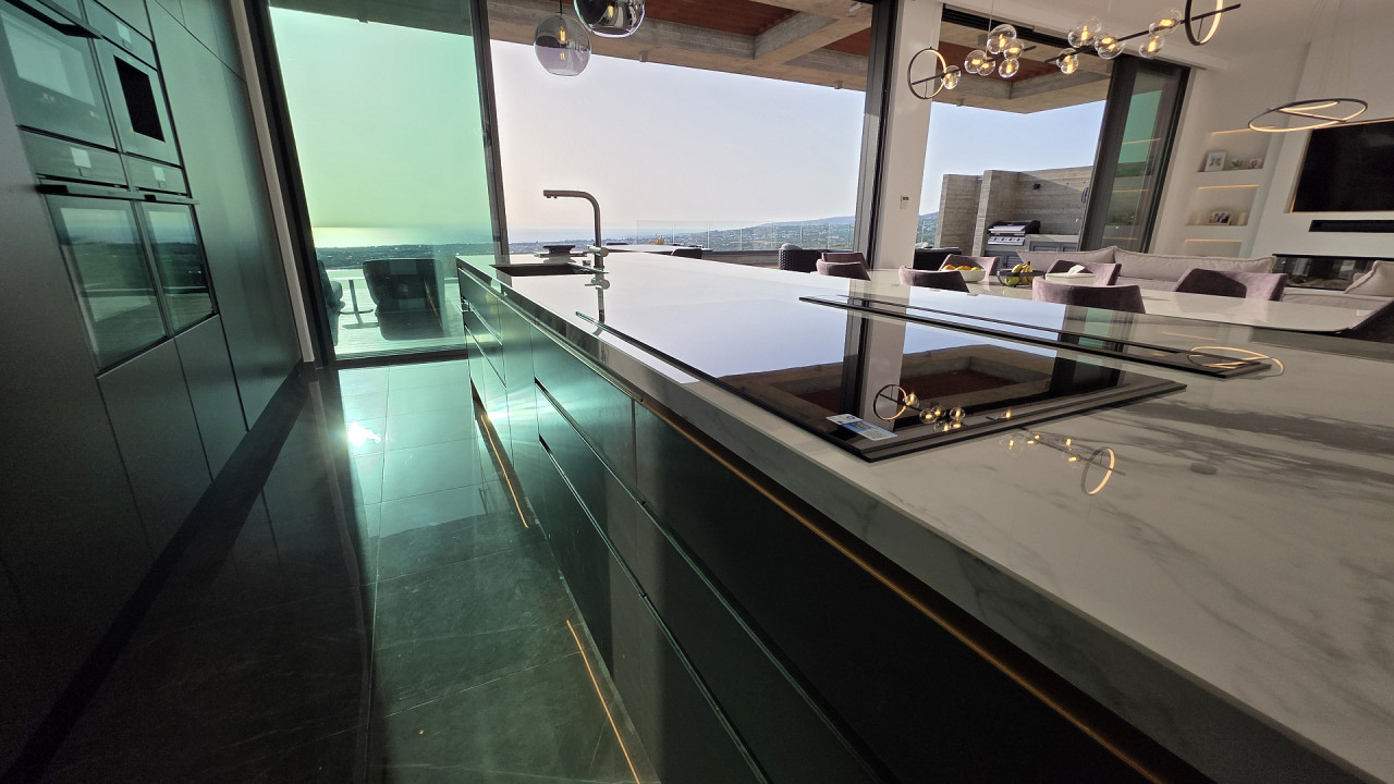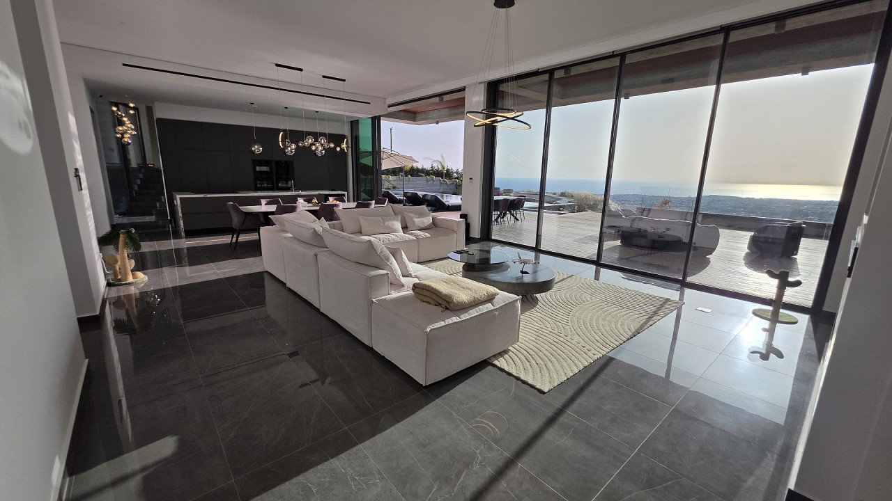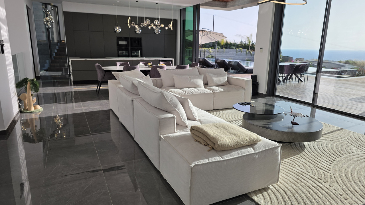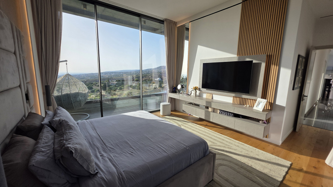 Luxury villa with panoramic sea views in Armou area, Paphos. The villa is just a short drive from Minthis Resort and the International School of Paphos, with easy access to the highway leading to Limassol and all city amenities including shops, hospitals, and a university.
