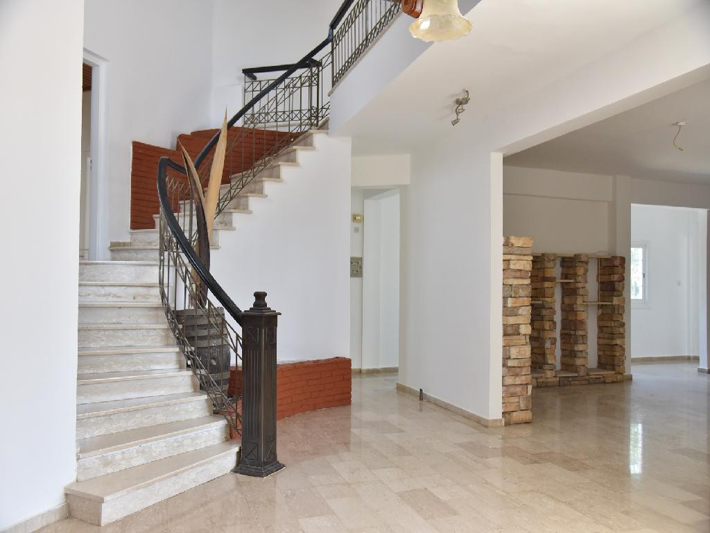 On the ground floor it consists of a living room, a dining room, a kitchen with a dining area, a small laundry room, one bedroom, a common bathroom with a WC and verandas. On the first floor it consist of three bedrooms (the one is an ensuite with a shower) and a common shower with a WC.