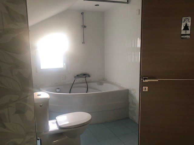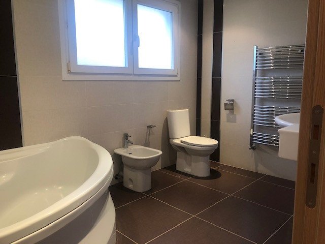 Only 5 minutes walking to the sea. It has a large dining/living area, a separate kitchen, en-suite bathroom in the master bedroom, A/C, central heating, a nice garden, sauna and covered parking.