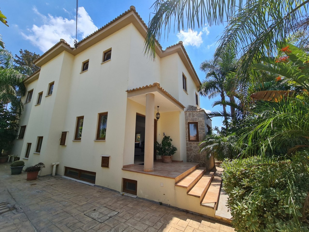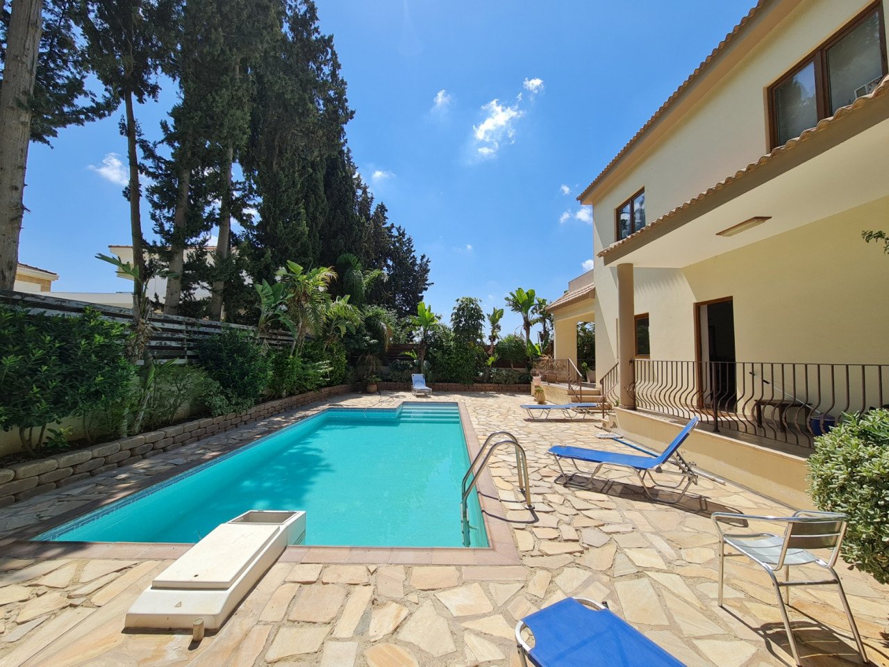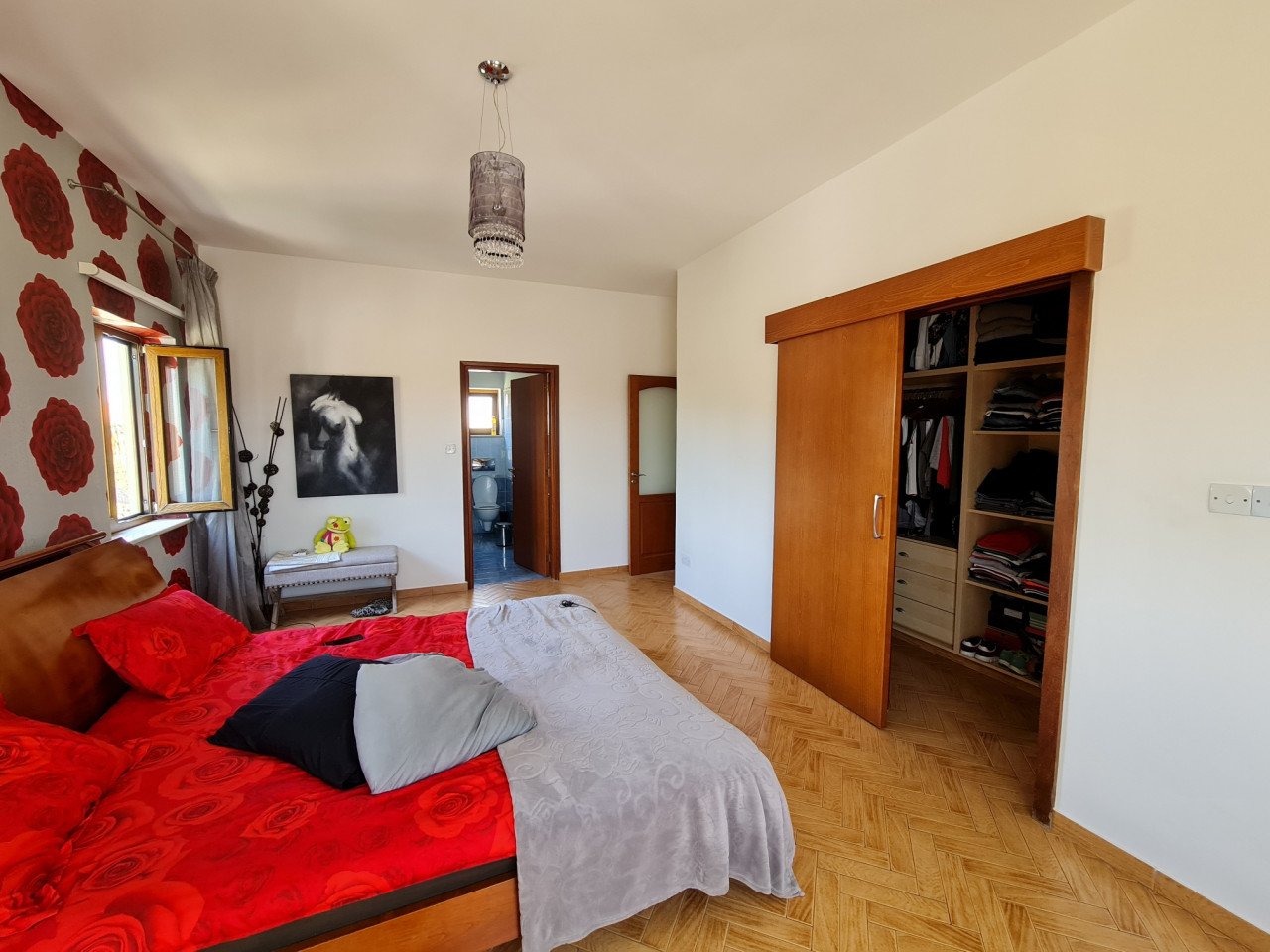 This spacious 5-bedroom villa is located in Deryneia area, in a quiet neighborhood. Firstly, the villa has a huge plot of 653sqm and an internal covered space of 300sqm with an additional 160sqm basement area! So, the house is ideal for people who would love to have a large area with open space. It consists of 4 bedrooms on the 1st floor, 1 of which is an ensuite and a toilet with a common bathroom, a big fully fitted kitchen on the ground floor, and a really big covered veranda overlooking the pool area and garden, where you can enjoy your coffee and just relax. In the basement, the villa offers a separate fully fitted kitchen, open plan living area and dining area, an extra room for office or maids room, and a shower with a toilet room.