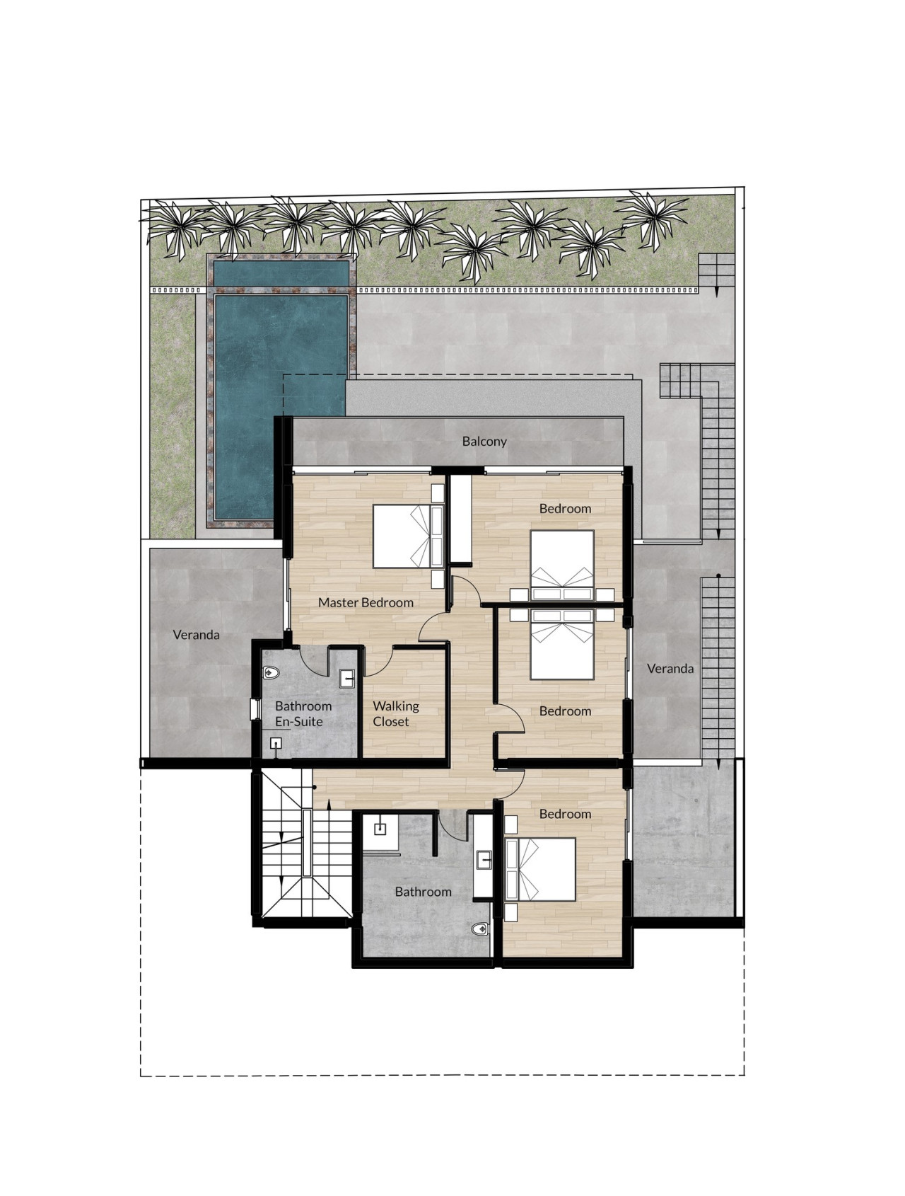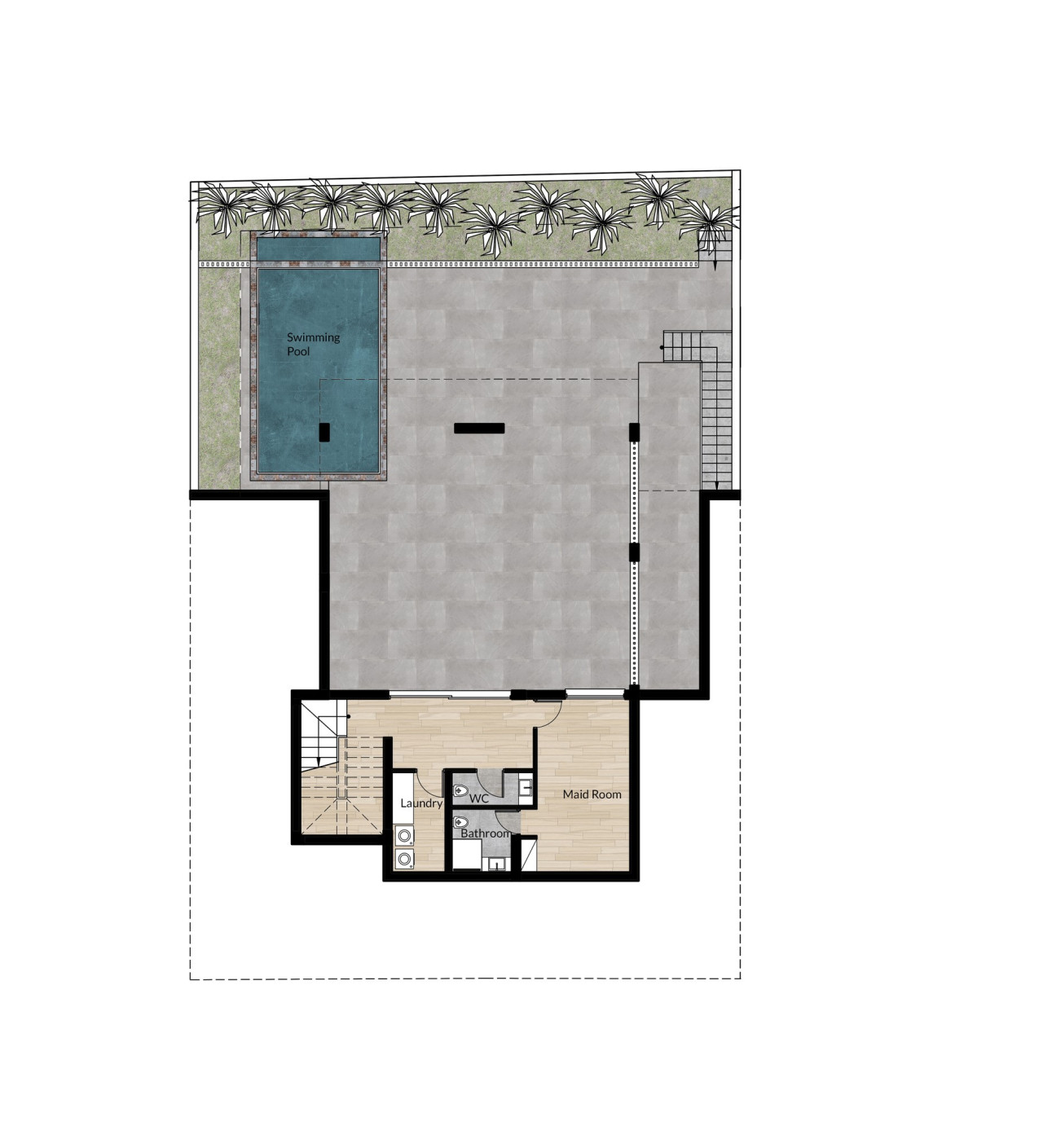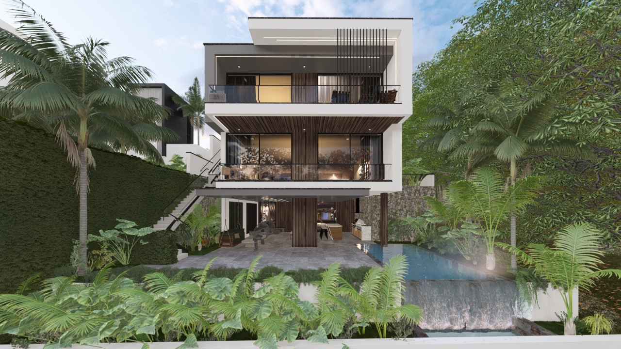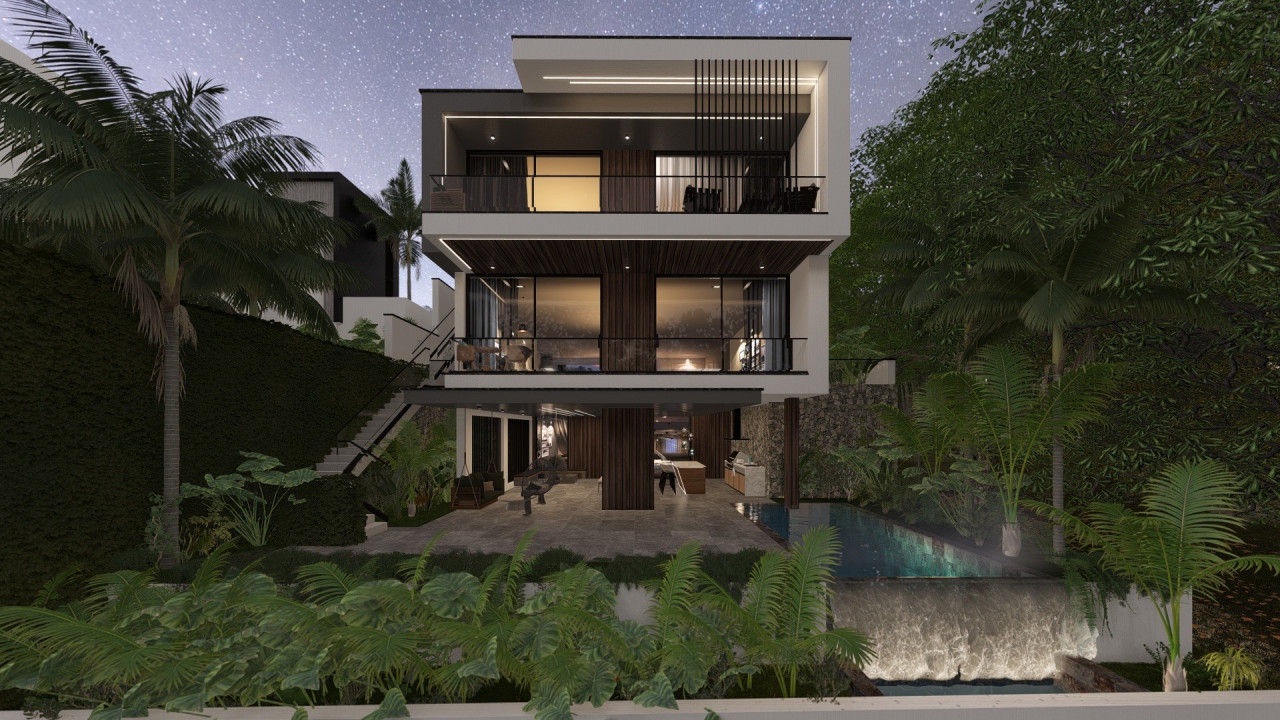 The number of floors in the villa starts from top to bottom, which creates additional privacy on the plot, where is the rest zone near the swimming pool and barbecue aria.