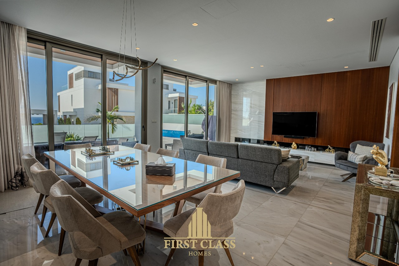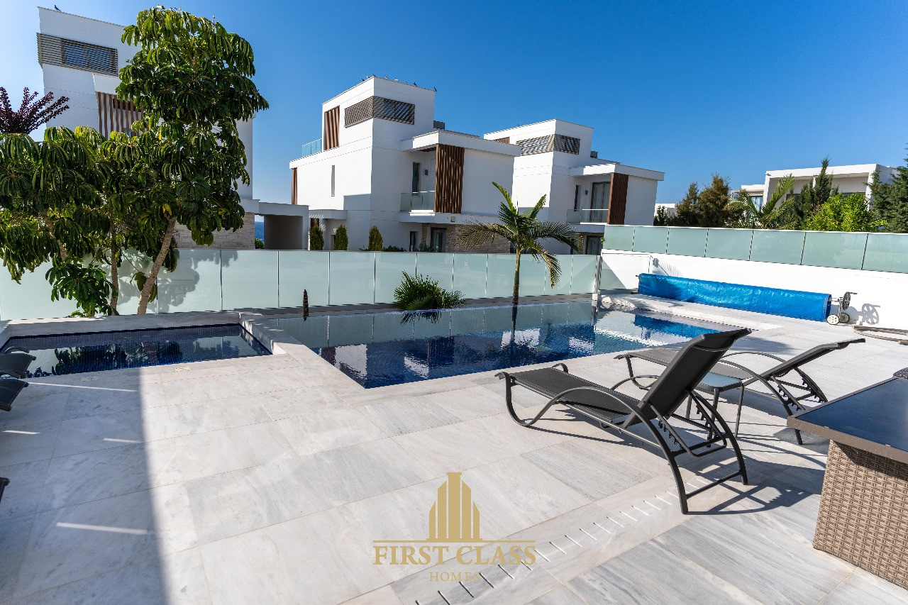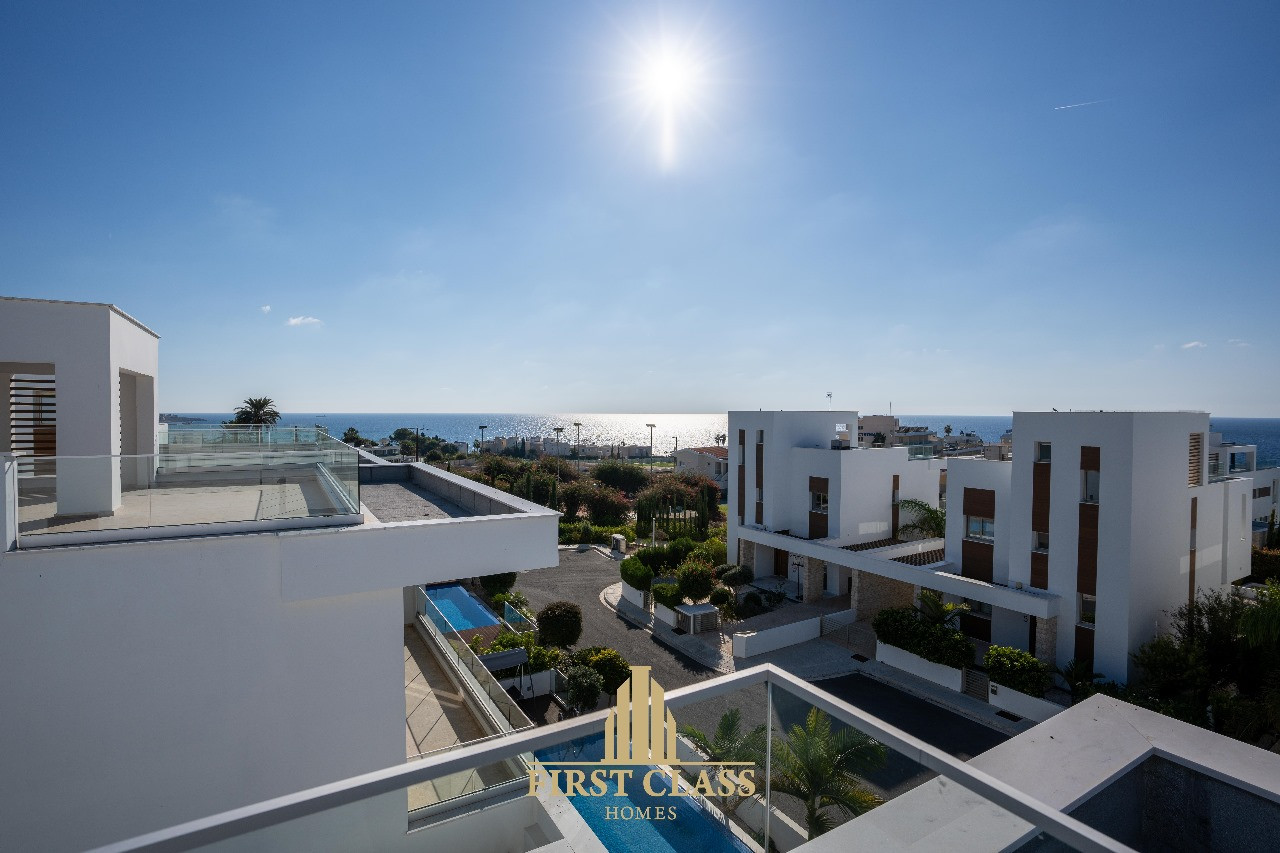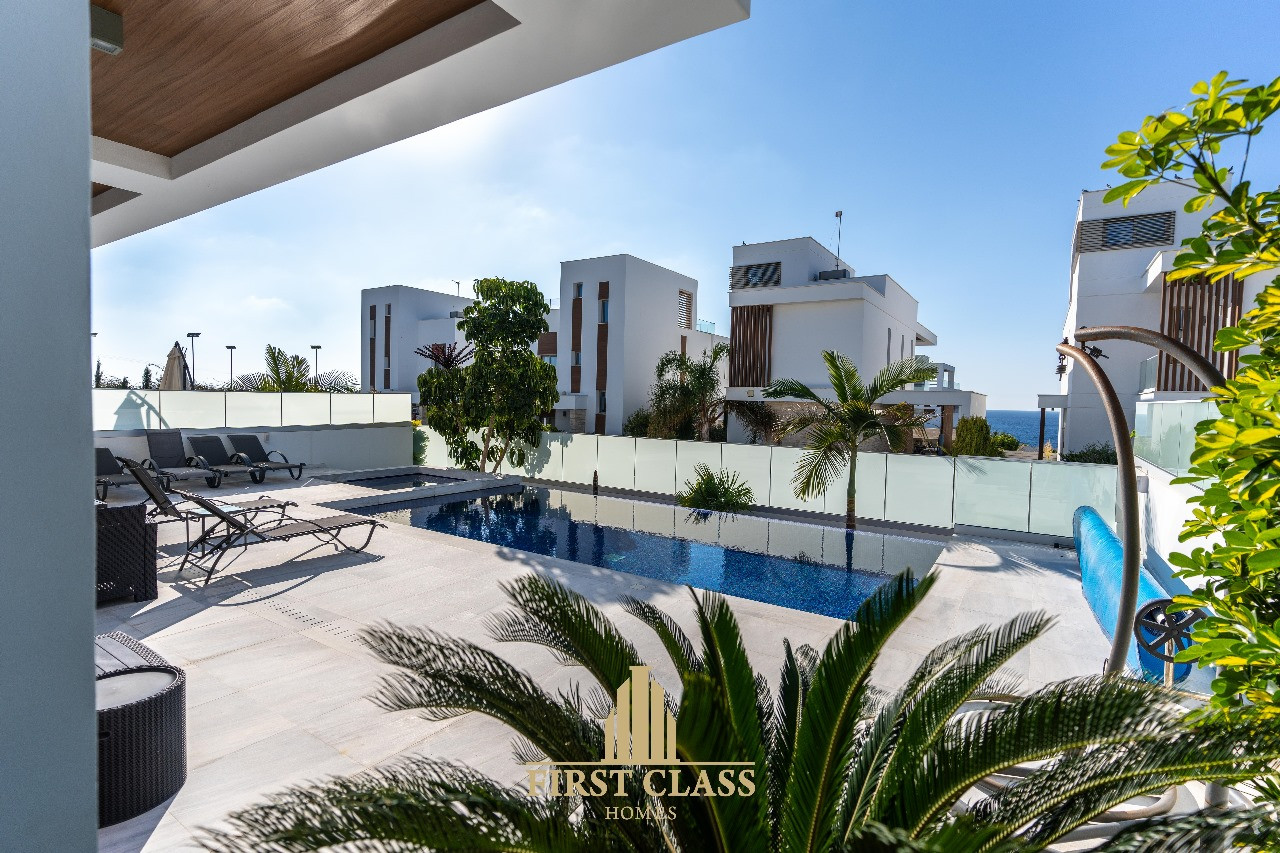 Five bedroom furnished secondline to the sea villa, with sea views, in a unique modern beachfront development with private pool. The villa enjoys large terraces and private swimming pool, while it features superior finishes and specifications. It is conveniently located near the Paphos Harbour, the tourist area, the Kings Avenue Mall and various other shops bars and restaurants. If you are searching for beachfront development with private pool then this is the perfect choice.
