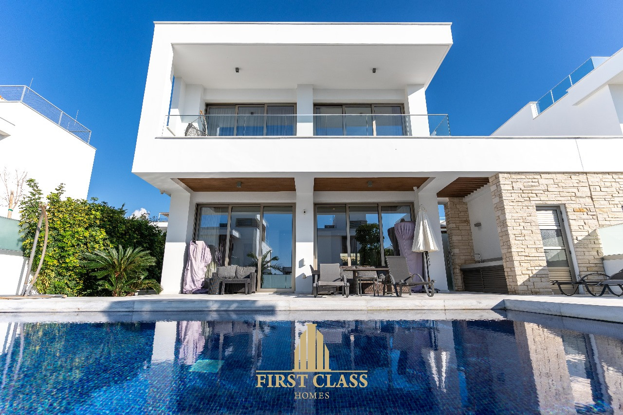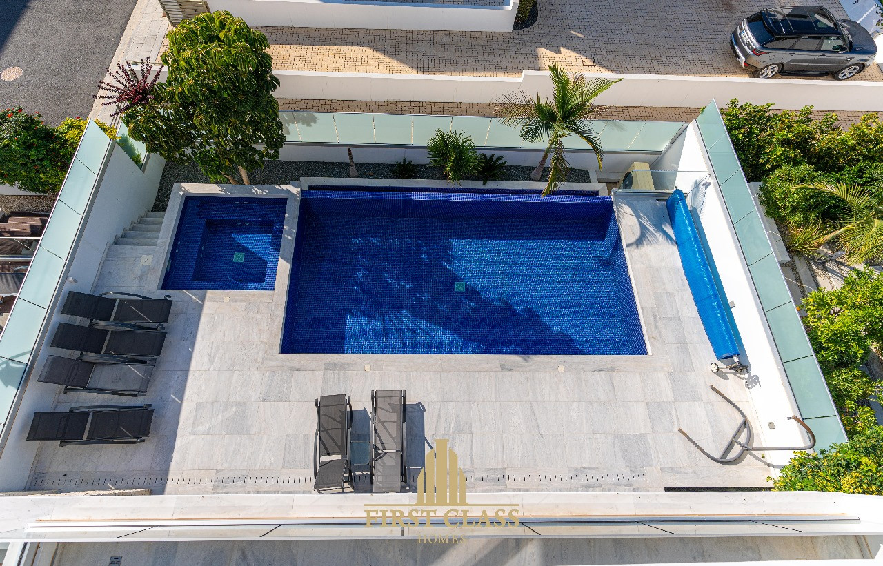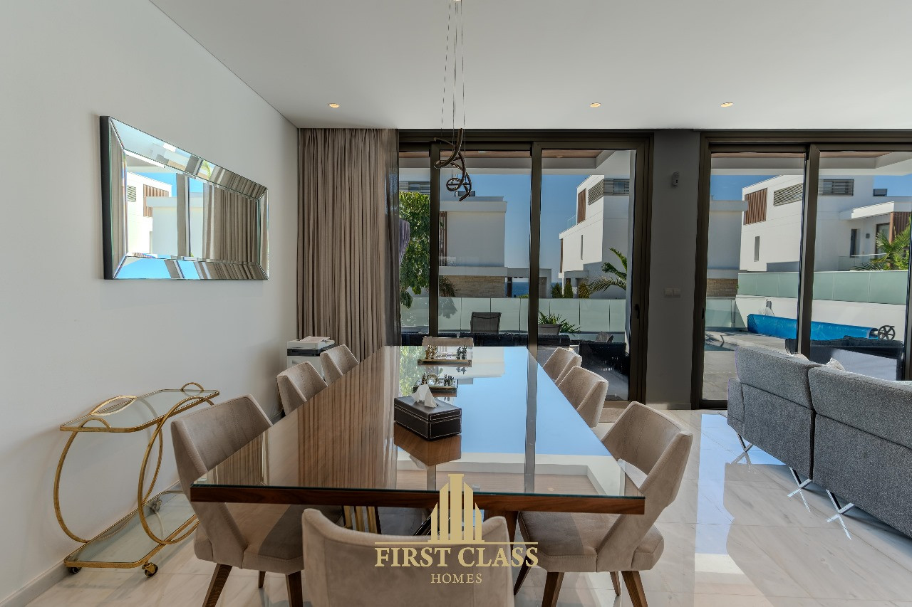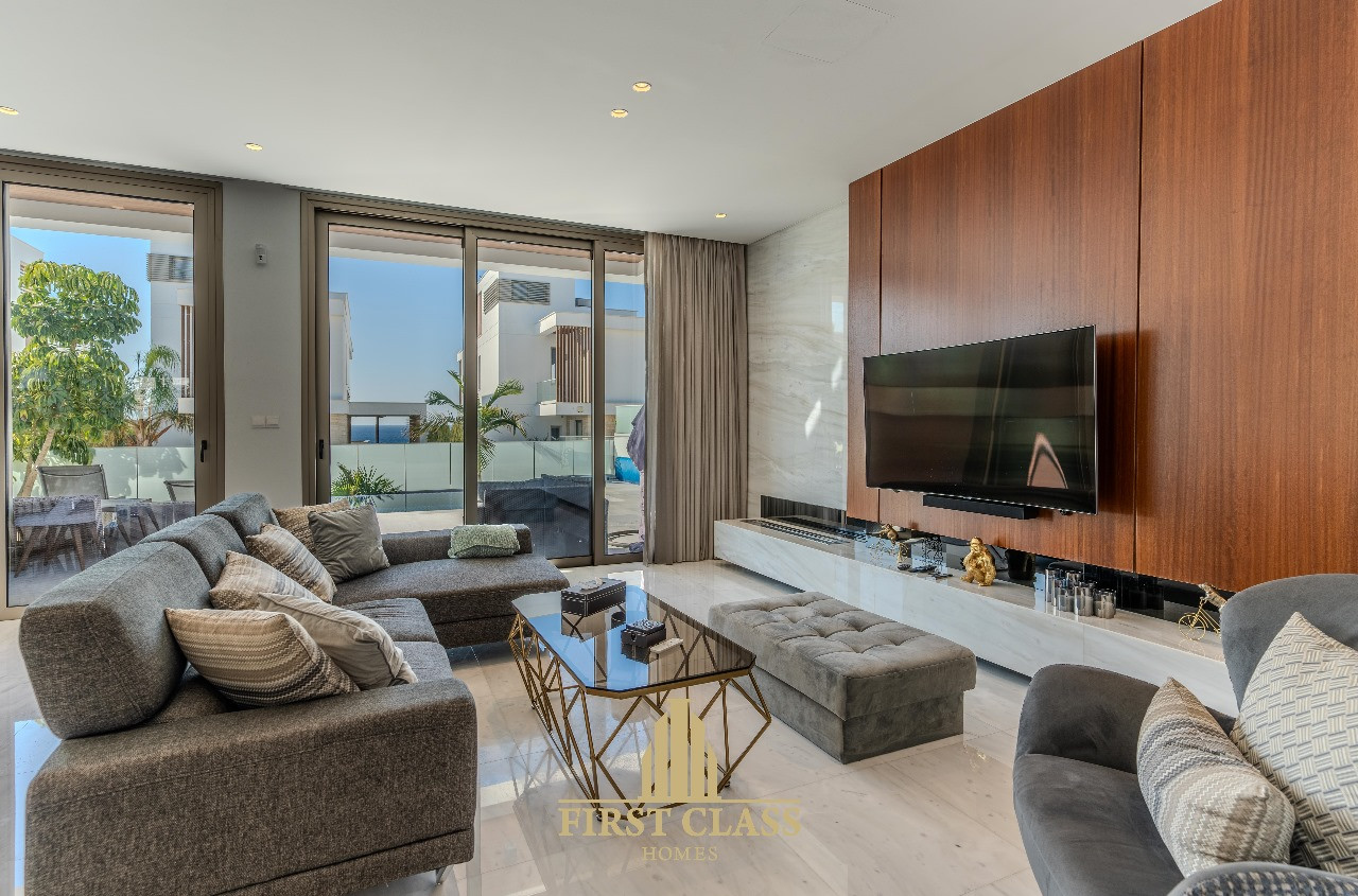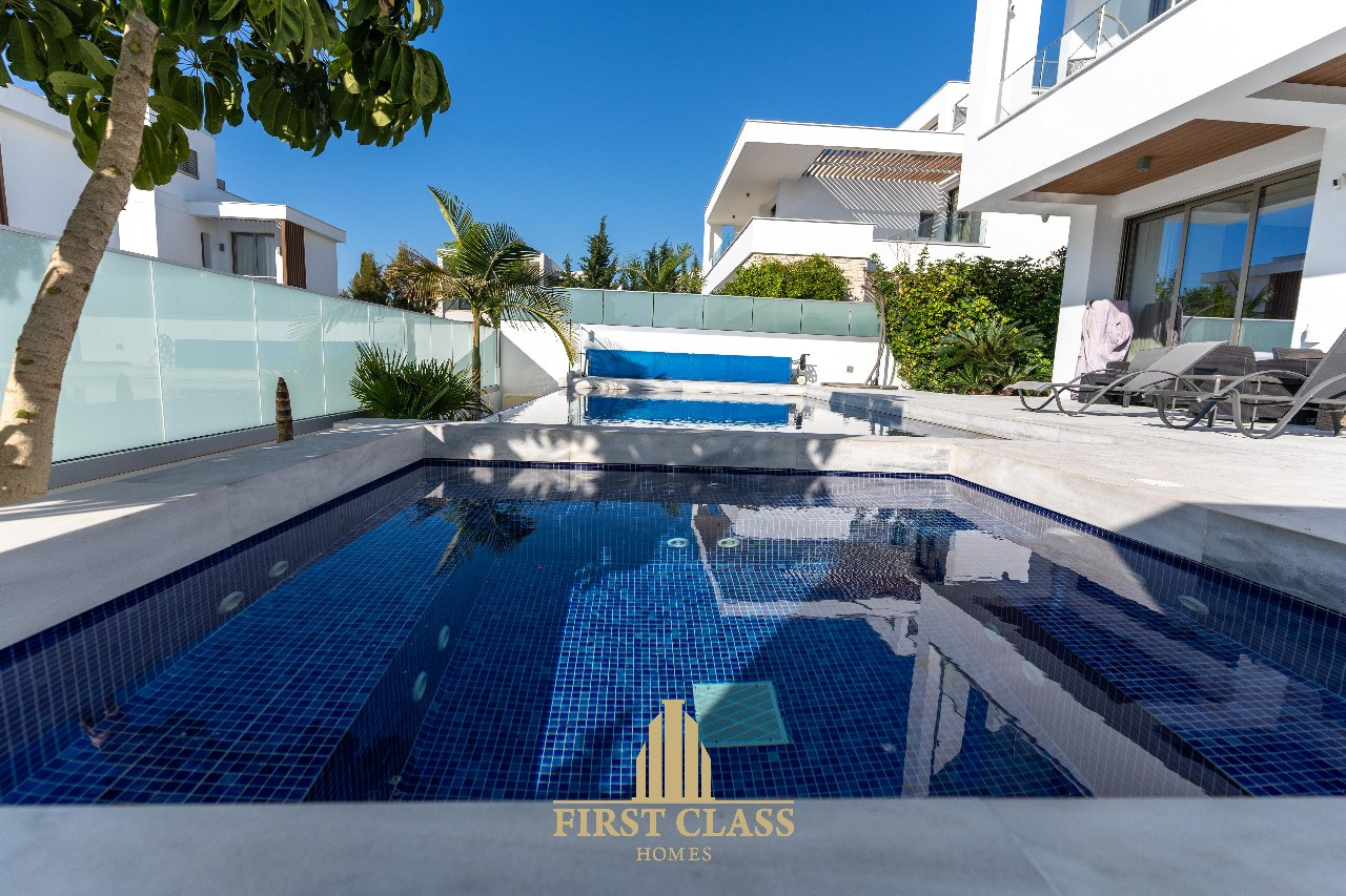 Five bedroom furnished secondline to the sea villa, with sea views, in a unique modern beachfront development with private pool. The villa enjoys large terraces and private swimming pool, while it features superior finishes and specifications. It is conveniently located near the Paphos Harbour, the tourist area, the Kings Avenue Mall and various other shops bars and restaurants. If you are searching for beachfront development with private pool then this is the perfect choice.