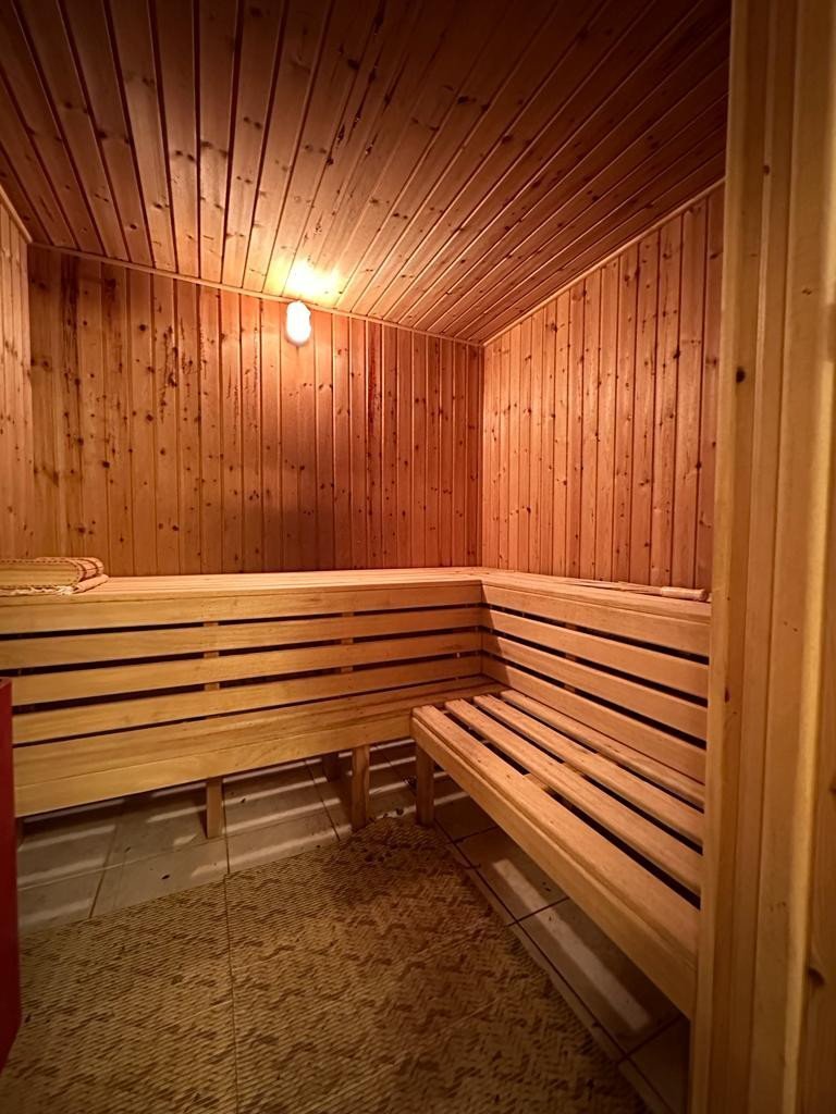 Taking the staircase to the lower ground floor, you'll find the fifth bedroom, two bathrooms, a sauna, a lounge area, and two storage rooms.