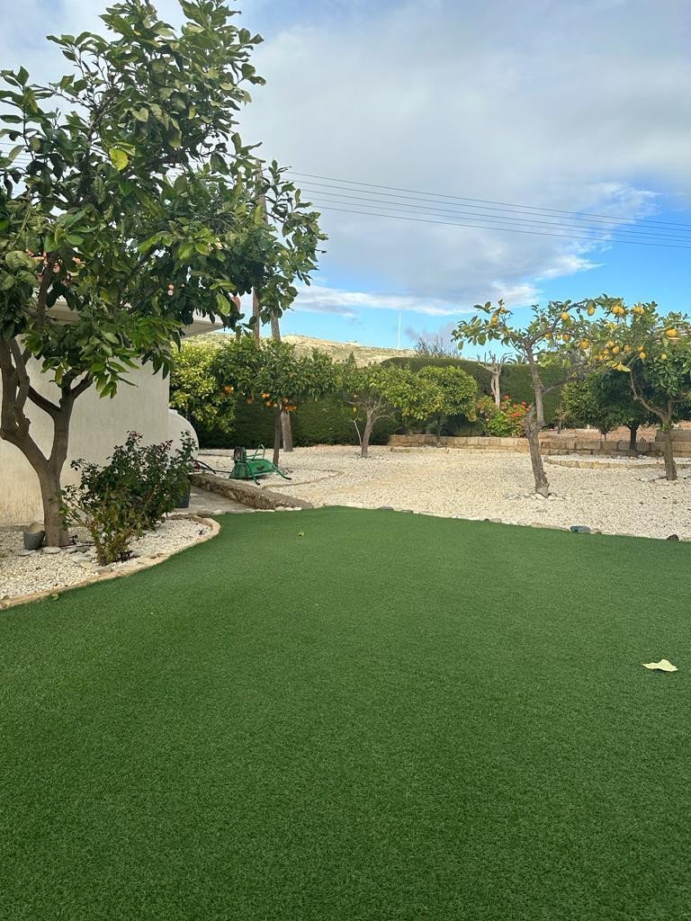 The property sits on a large plot of 1,510 sq.m. with beautifully landscaped gardens, fruit trees, plenty of relaxation/sitting areas, a large private swimming pool, a custom-made BBQ area, plenty of shaded areas for al fresco dining and lounging, and lots of entertainment areas. The extras are numerous, including photovoltaic panels (7kw), underfloor heating and radiators that work with an electric heat pump and diesel, an ultraviolet pool system, and a water well. The property comes with title deeds, and the price includes furniture, fixtures, and fittings.