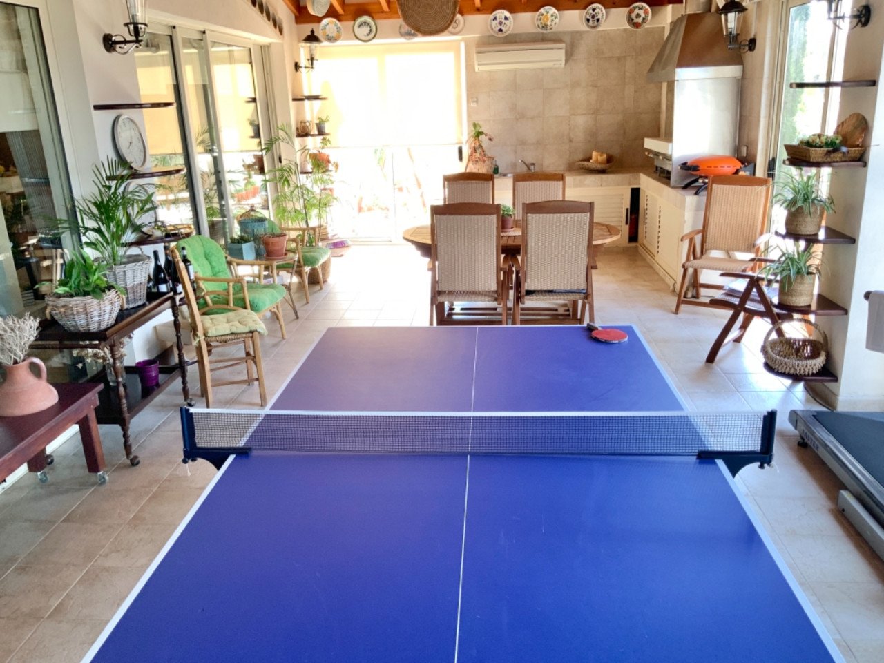 The villa is semi-furnished, providing its new owner with all the essentials and the opportunity to give their personal touch to their new home! All the electrical appliances are included, as well as a high-end security system, photovoltaics, underfloor heating, and A/C units in all rooms!