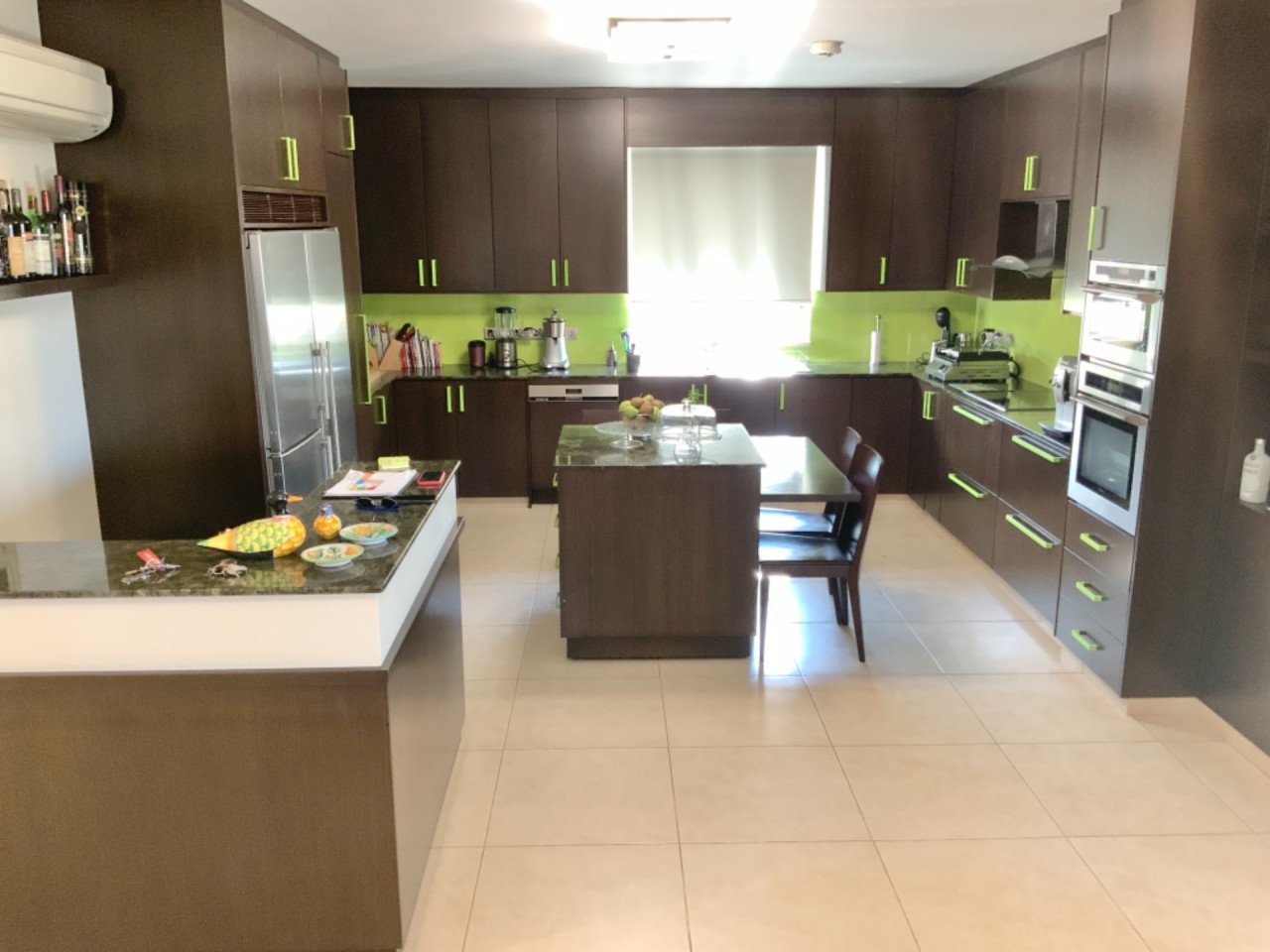 A vast veranda circles the upper floor, consisting of an ensuite master bedroom with a walk-in wardrobe and a jacuzzi. There is another spacious ensuite bedroom, two other bedrooms, and the main bathroom.