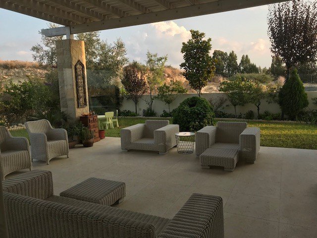 The property is situated at the end of a dead-end road in a very quiet neighborhood, only few minutes away from the Mall of Cyprus, and other shops and restaurants in Latsia. Opposite the house there is a green area (no other house will be built) and plenty of parking place. The house has an undercover car park (with an electric gate – remotely operated). Its internal area covers 460 sqm, and features big verandas (i.e. roofed porch) and a garden.The property itself comprises of three levels, each with its own facilities (listed below).
