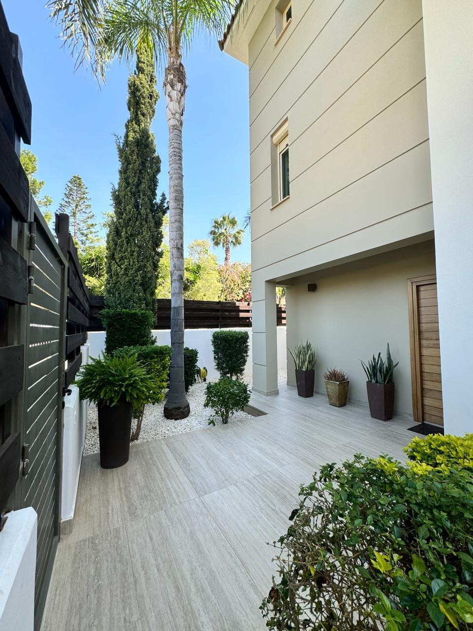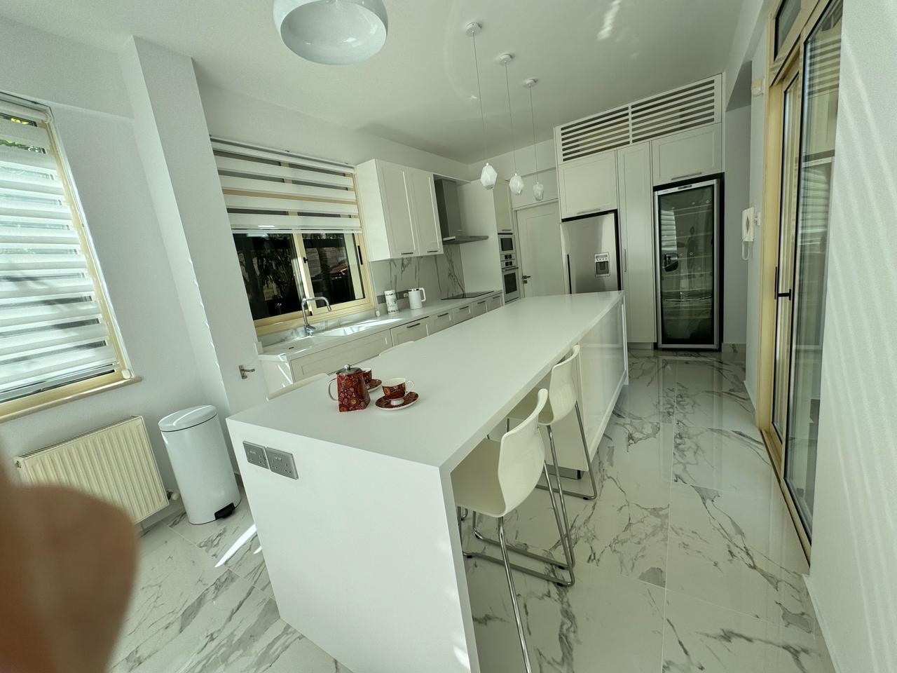 The villa is located in a residential complex, in a prestigious quiet area with luxury villas. The plot has a garden with mature trees,a private swimming pool, a garage and a BBQ area.