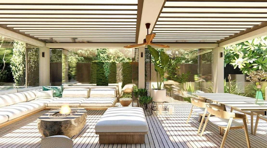 Total covered area: 292 m2 (internal 233 + covered terraces 59) + outdoor balcony 56