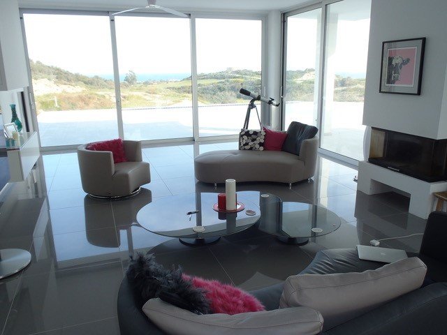 The minimalistic design makes the most of the surroundings and sea views and has a very large salt water infinity swimming pool with sea shore slope and shallow steps.