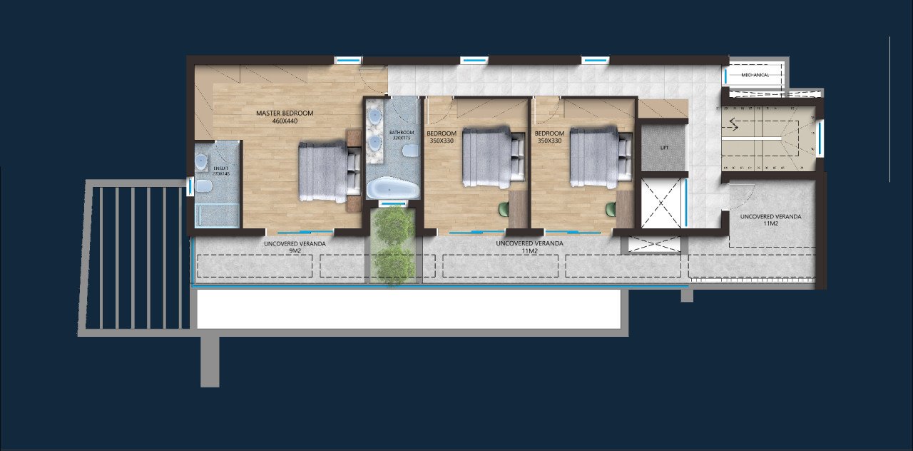 VRV Air conditioning is to be installed throughout Living, Dining and Kitchen areas
