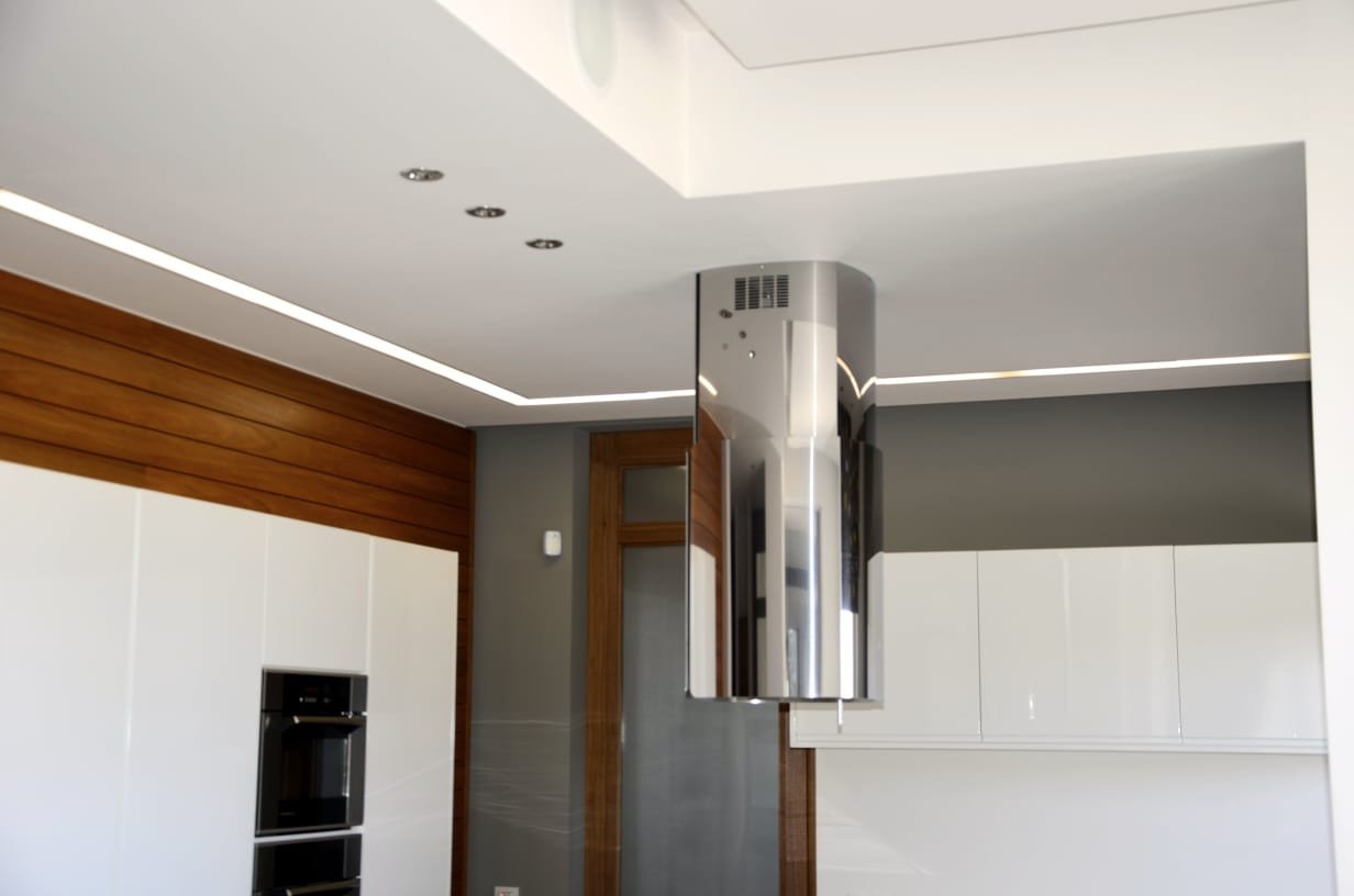 The sitting area and the kitchen has also hanging roofs made of dry walls with hidden led (coloured if you wish) lighting systems.