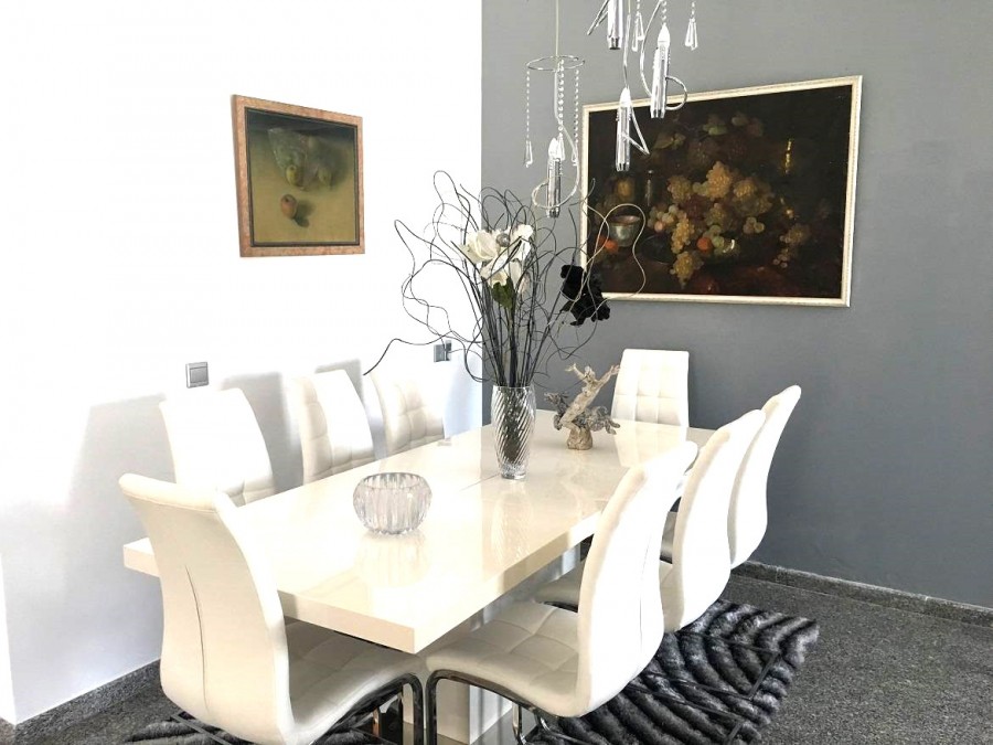 Amazing 4 bedroom villa in a quiet although close to all amenities Parekklisia within a minutes of drive to city center, beach and all the rest activities. Villa has a large plot of land, beautiful mature garden with trees (olives, tangerines, lemons), swimming pool, covered barbeque area, own well, automatic irrigation system. In the house all the rooms are equipped with air conditioning, heating. On the ground floor - an entrance hall, 2 spacious living rooms, a fireplace, a fully equipped open kitchen (dishwasher, wine cooler, oven, etc.), Guest toilet, 2 storage rooms (one for shoes), Laundry, 1 bedroom guest apartment with small kitchen, shower and living room (suitable for a nanny or Housewives), garage. On the ground floor: office, 4 bedrooms (1 bedroom with bathroom), large shared bathroom, a dressing room. On the second floor: storage room. Security system and camera.