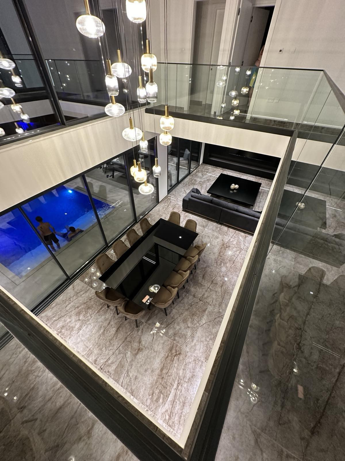 The house includes a large kitchen, dining and living room, a guest bathroom and a bedroom with a bathroom on the ground floor. It also includes 4 bedrooms on the first floor, all with en-suite bathrooms.