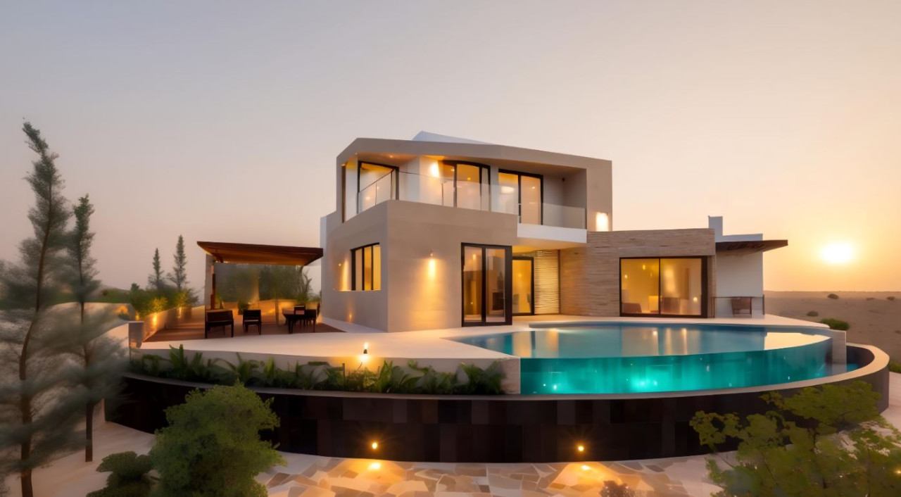 Nestled in a peaceful rural setting just minutes from Sea Caves, Coral Bay, and Peyia, this stunning contemporary residence blends modern design, sustainability, and luxury living. Set on a generous 980m² plot with beautifully landscaped gardens, this one-of-a-kind property offers privacy, breathtaking sunset sea views, and exceptional indoor-outdoor living.