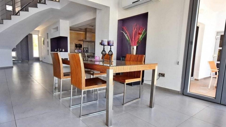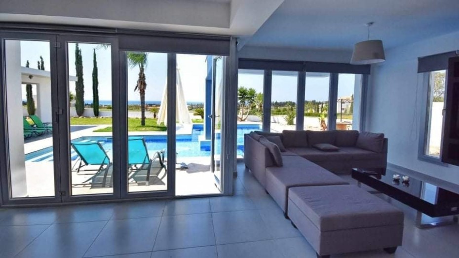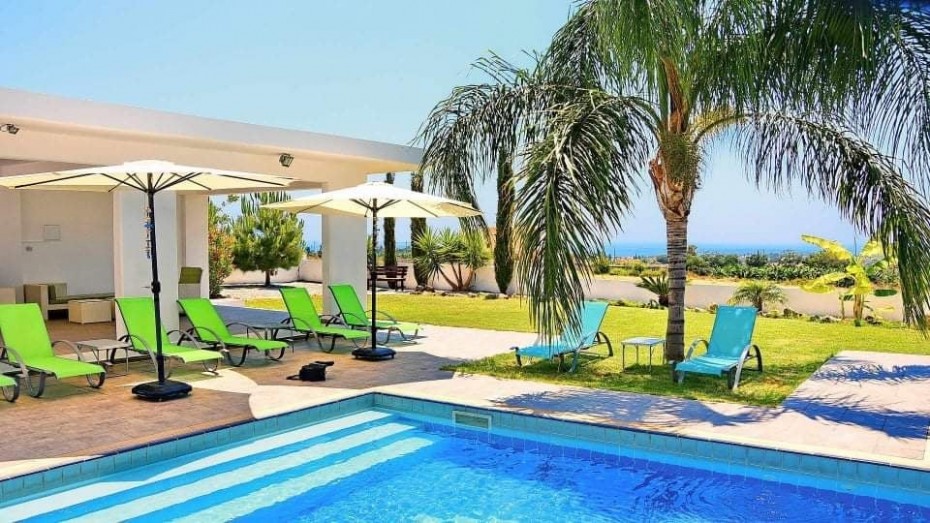 Experience exceptional coastal living in this stunning 5-bedroom villa in Coral Bay, offering beautiful sea views and easy access to shops, bars, restaurants, and tavernas—just a five-minute drive away. The bright, open-plan living and dining area features sliding patio doors that lead directly to a spacious veranda, large private pool, and landscaped garden. The dining area includes a generous family-sized table, and the fully equipped kitchen comes complete with all essential white goods. The ground floor hosts one double bedroom with direct access to the pool area. On the first floor, you’ll find three additional bedrooms, each designed for comfort and privacy. A separate studio with its own kitchen and shower room provides extra flexibility for guests or extended family. This impressive villa is fully equipped for year-round living, featuring central heating, air conditioning, a cozy fireplace, laundry room, outdoor jacuzzi, swimming pool, BBQ area, bar, and a convenient storage room. A perfect blend of comfort, space, and resort-style amenities—ideal as a family home or a luxurious holiday retreat.