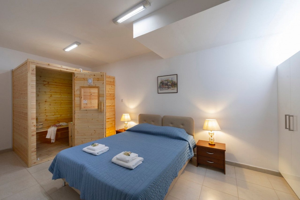 The villa is an amazing and unique. It is five-bedroom villa with Jacuzzi and sauna which accommodates up to 15 people. The basement of the house offers 1 bedroom, 1 bathroom, a sauna room and the laundry facilities. The ground floor consists of 1 bedroom, 1 bathroom, kitchen, dining and sitting area. Furthermore, in the first floor there are 3 bedrooms, which one of them is the master En-suite bedroom, and two bathrooms. In the garden area there is a Jacuzzi which offers relaxation in the summer nights!!