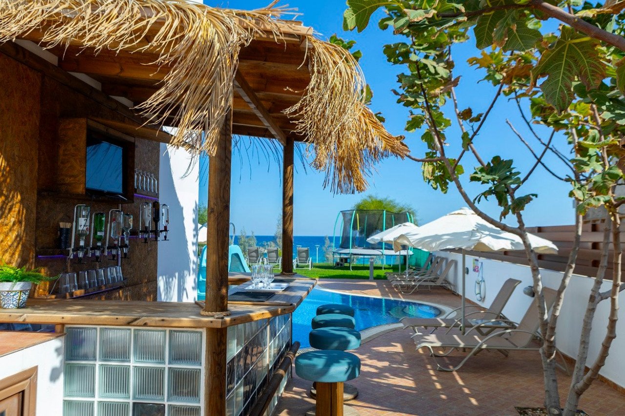 The villa is an amazing and unique. It is five-bedroom villa with private heated pool accommodates up to 15 people.The basement of the house offers 1 bedroom, 1 bathroom, a sauna room and the laundry facilities. The ground floor consists of 1 bedroom, 1 bathroom, kitchen, dining and sitting area. Furthermore, in the first floor there are 3 bedrooms, which one of them is the master En-suite bedroom, and one bathrooms. In the garden area is the Heated pool, the pool bar, a Jacuzzi, a BBQ, a pool cabana and a pool slide.