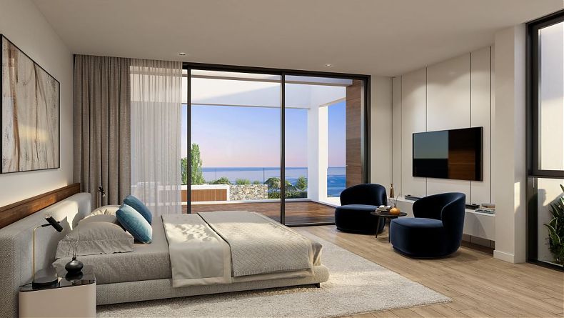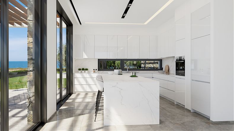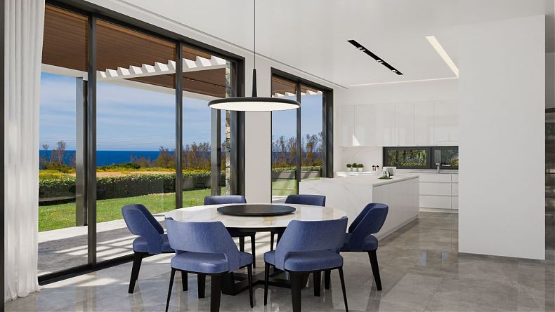 This modern villa, under construction, is situated in an outstanding, quiet location at the Sea Caves area of Peyia, with stunning views of the sea and magnificent sunsets.