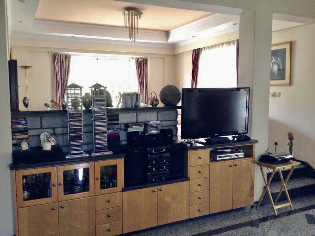 It consists of a spacious open plan living room with the dining area, big separate kitchen, a family bathroom with jacuzzi, en-suite showers in 2 bedrooms and a guest toilet, very big yard around the house with garden, a big Swimming Pool with jacuzzi, a built barbecue, storage space and 2 covered parking spaces in a garage. Also there is a maids room.