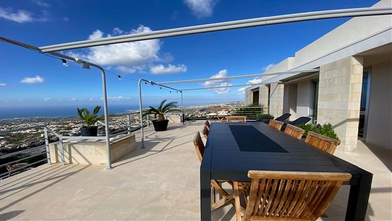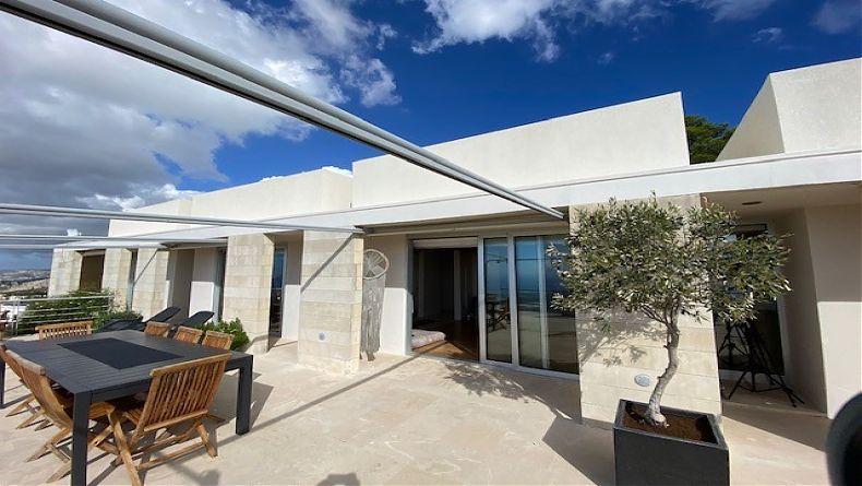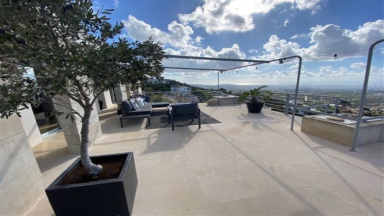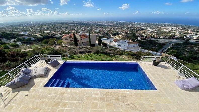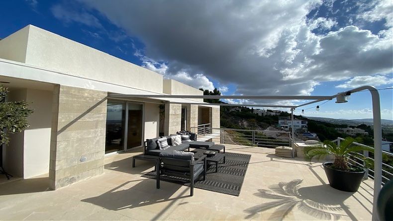 The bedrooms open up to a large veranda with beautiful views of the Paphos coastline.