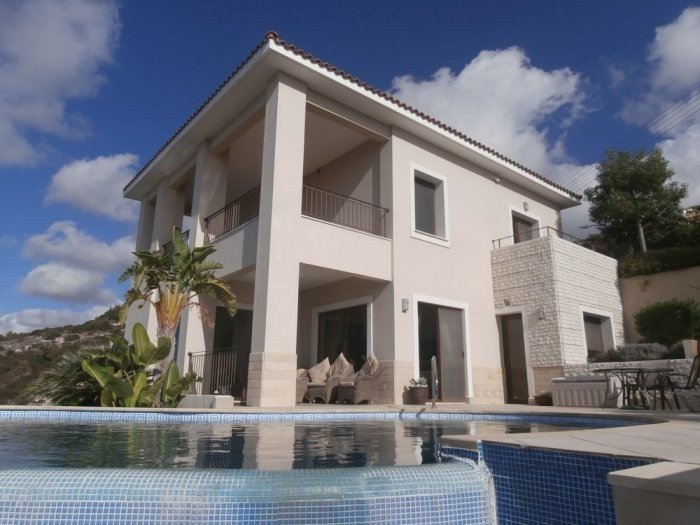 Detached 5 bedroom villa offering unobstructed panoramic sea city views of Paphos and full privacy.