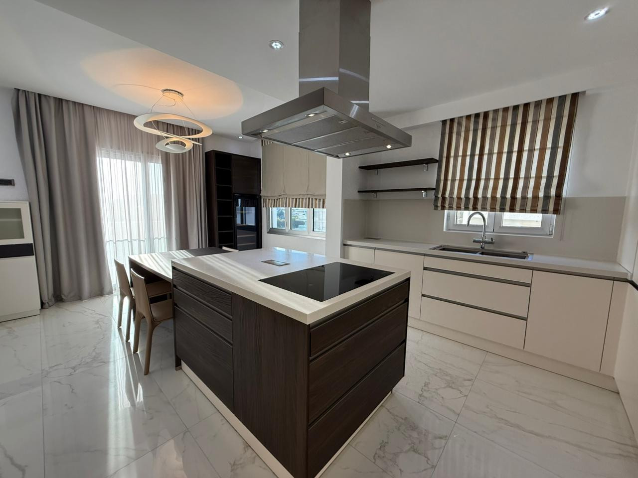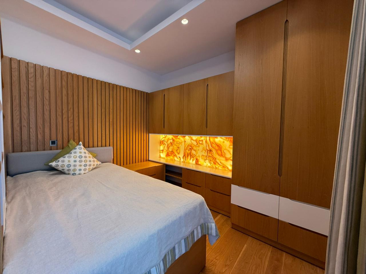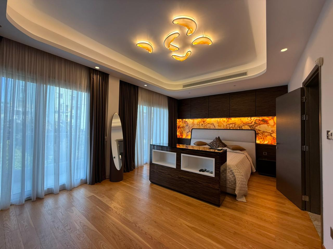 Penthouse: it has 6 bedrooms, a spacious living room and a separate kitchen. There is a direct access to the private rooftop terrace of 70 m2 with sundeck and summer kitchen where the famous “EGG” barbecue oven is placed The design of the penthouse was made by using only the exclusive materials such as teak wood, onyx and corian. There is a built-in lighting, fitted wardrobes and custommade furniture. The curtains in the whole penthouse are made from 100% cotton precious Italian fabrics