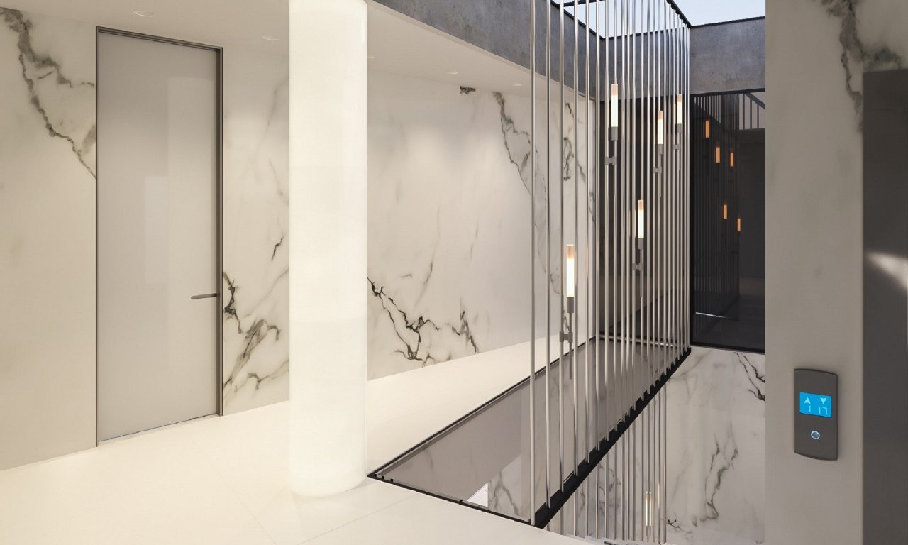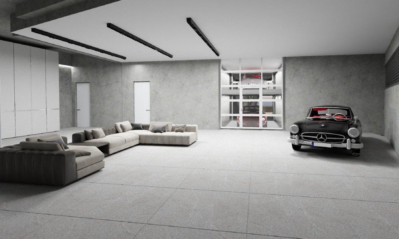 Covered parking in the basement, 6 parking slots, car elevator, 2 guest parking