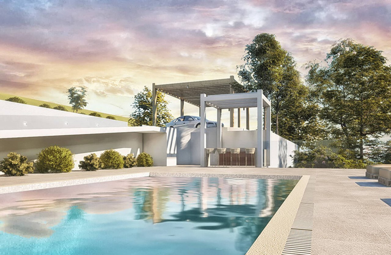 Outside, the gardens will be expertly landscaped to make the most of the elevations. There are a number of covered and uncovered seating areas surrounding the villa. The expansive pool terrace from which there are glorious ravine, sea and sunset views surrounds the 5m x 10m swimming pool.