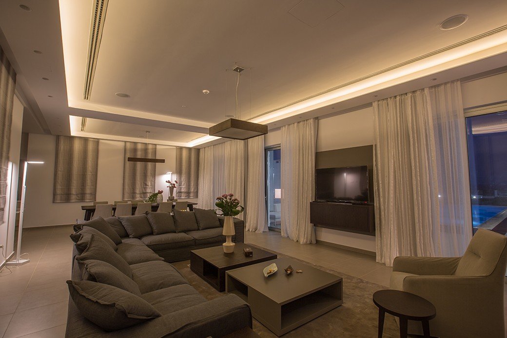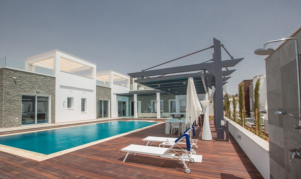 All villas have living room and dining room for 12 persons, 6 bedrooms, 5 bathroomskitchen and small in the basement for 1-2 villa 3-4-5 have additionally 1 small and a big kitchen in a basement