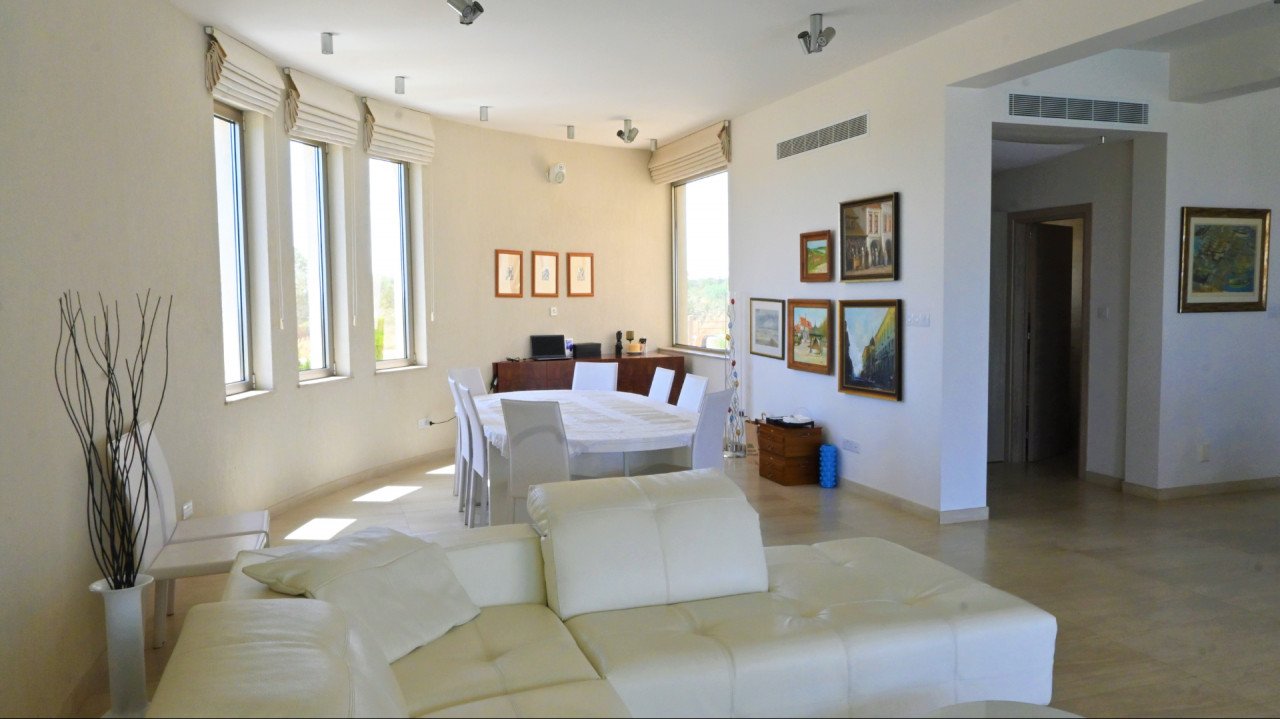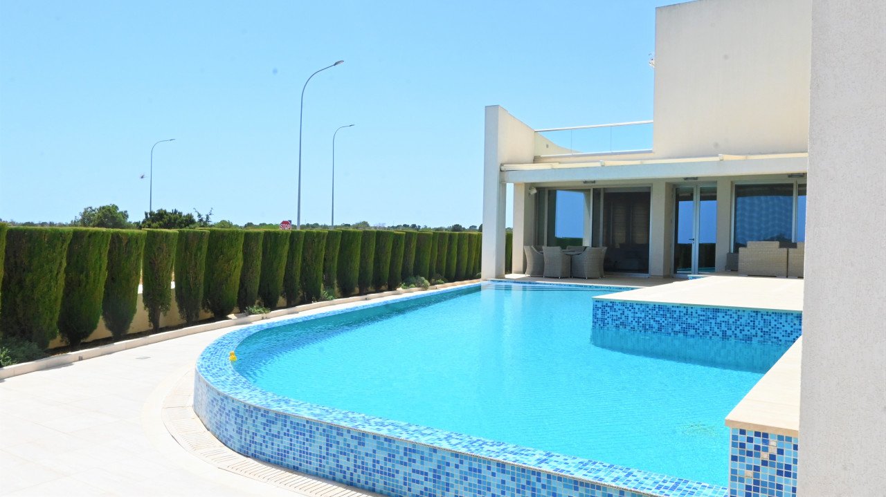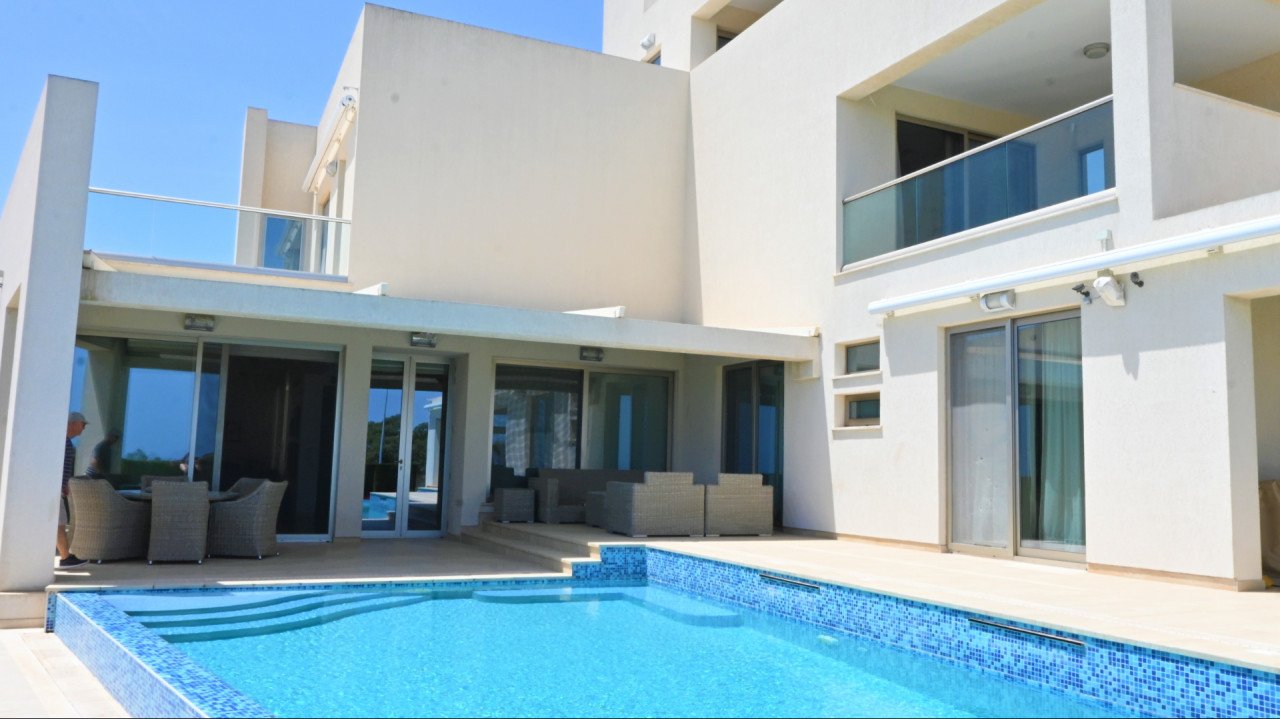 An astonishing 6 bedroom Villa located at Potamos of Liopetri area, right next to Ayia Thekla. The Villa is up on the hill with no other houses near it, and the view is breathtaking. From all the balconies of the house is visible the whole area of Ayia Thekla, Ayia Napa, and the new Marine of Ayia Napa. Besides that, it is surrounded by the national forest of Potamos of Liopetri. Just imagine the view. Now, Let's some of the many features of this amazing house. It consists of a basement, ground, first floor, and roof garden! All of the 6 rooms in the house are spacious and have fit-in wardrobes. You can move between the floors by elevator or by the stairs which are made out of marble. The house was built to operate with maximum energy efficiency through photovoltaics, glass windows, and more. There has been a lot of planning for this unique Villa, with so many features and a modern internal-external decoration, that have created a masterpiece!