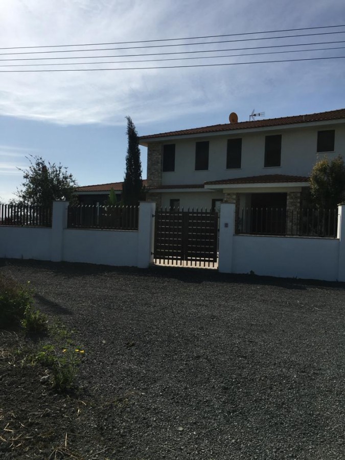 This big modern house with a private swimming pool is situated near the airport, near the villages of Dhromolaxia and Meneou. Easy access to all services, highways, and the beach. The house is 640 square meters built on a 5376 square meter plot. The pool is 6x12 meters. It has 6 bedrooms, an office, a playroom, TV room, living room, dining room, games room, double garage, storage room, barbecue place, mature garden, a lounge, a kitchen, a laundry room, a double garage, a storage room, and a utility room.