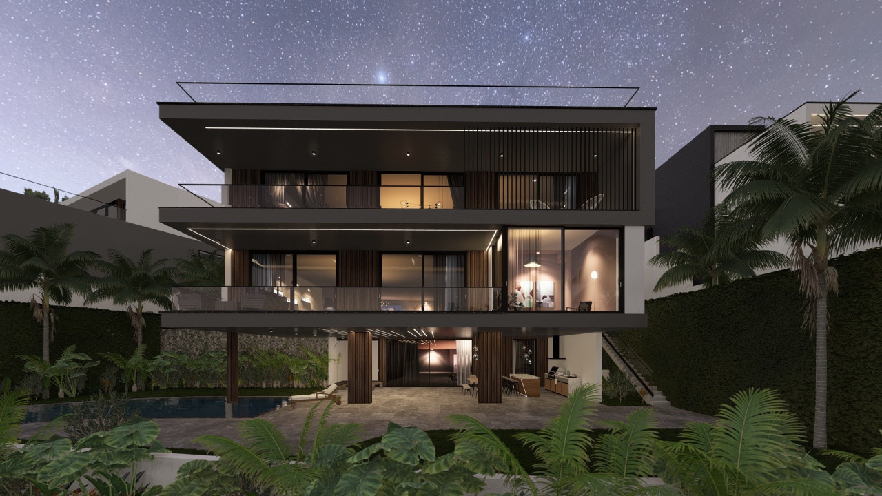 Villa has a big 97 sq.m. master bedroom on the top with big bathroom and big panoramic terrace. On the second floor there is the kitchen with the big salon, guests toilet, lift all over the floors. On the first floor there are 4 bedrooms with the own bathrooms (one of the bathrooms has the exit to the garden with the shower). On the ground floor big rest room, big laundry , sauna and one room with the own bathroom.