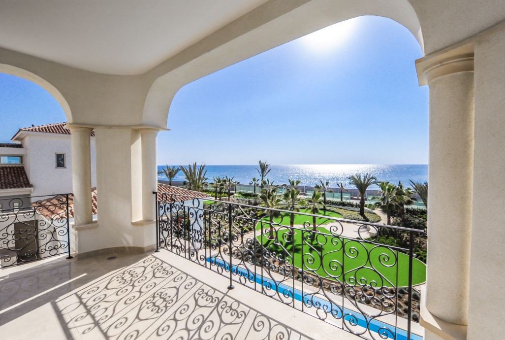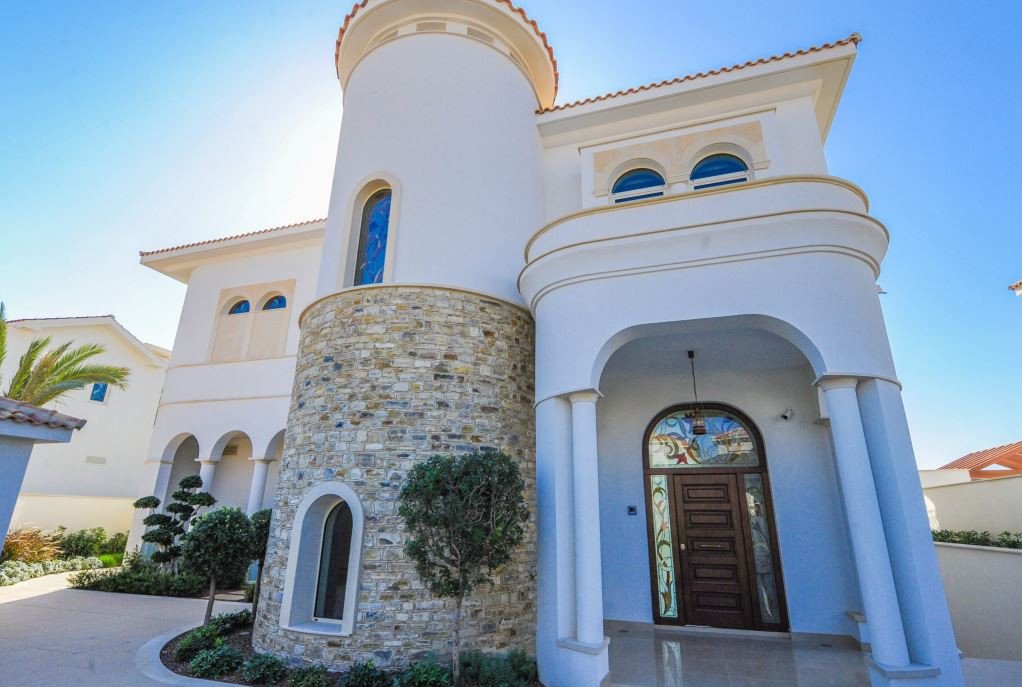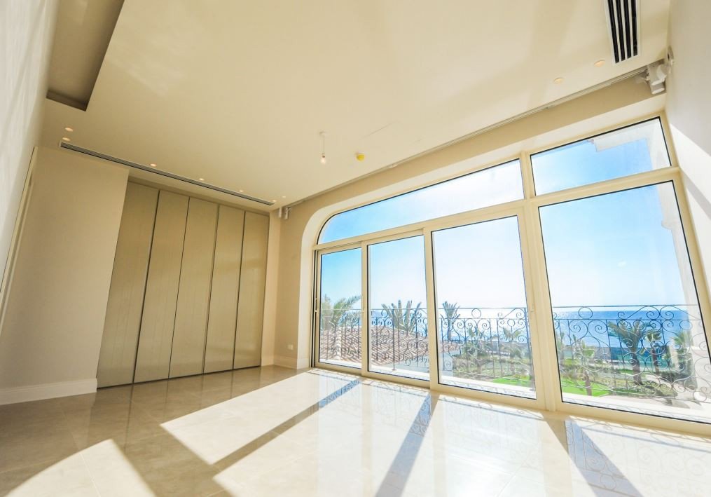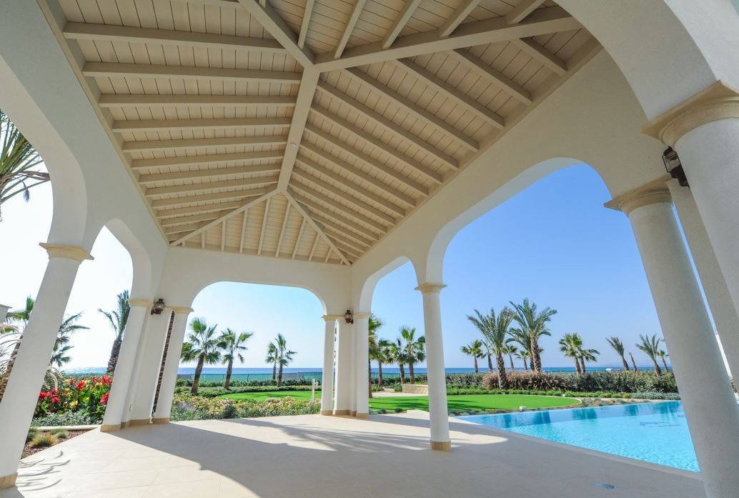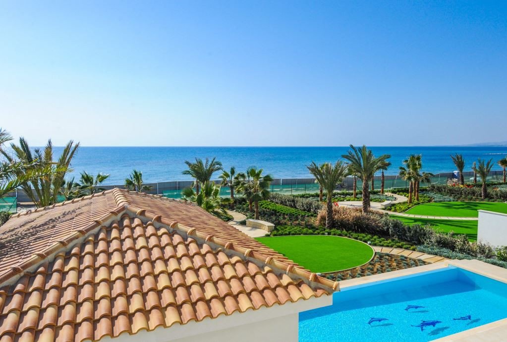 Luxury beach front 5 bedroom villa for sale in Larnaka, Cyprus with uninterrupted sea views. Only 15 minutes from the city center and 10 minutes from the International Airport. Part of a luxury private complex on the beachfront with amazing panoramic sea views. It is part of an exclusive gated community with only 16 villas available for private ownership with the highest level of security services. This Mediterranean villa has a covered area of 713 m² and sits on a plot of 1765 m² with large landscaped garden. It offers 6 elegant bedrooms with 6 bathrooms, spacious living and kitchen areas, indoor spa area with sauna and Jacuzzi, gym, private outdoor swimming pool, covered parking and a marvelous barbecue area. The villa offers a high level of specification, including a fully integrated comfort cooling and heating system, full ‘Lutron’ control system for multimedia, lighting, blinds, heating, cooling and entryphone system. Offering an excellent combination of location, price and quality construction, this is definitely a fantastic opportunity to enjoy a Mediterranean lifestyle in total comfort.