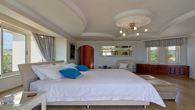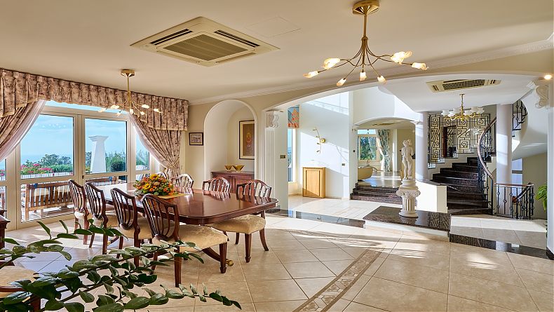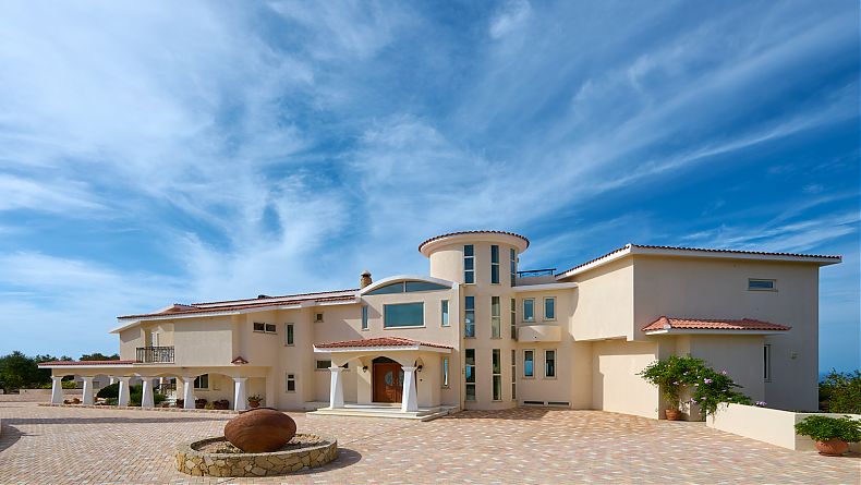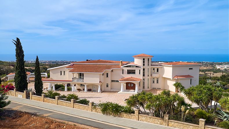 This SUBSTANTIAL 6 BEDROOM PRESTIGIOUS PROPERTY is to be found between the villages of Tala and Tremithousa, within easy reach of Paphos town, the harbour and Coral Bay, and having “stunning”, “amazing” and “outstanding” views of the coast, Coral Bay and the Akamas. Superb unobstructed views from 10 rooms.