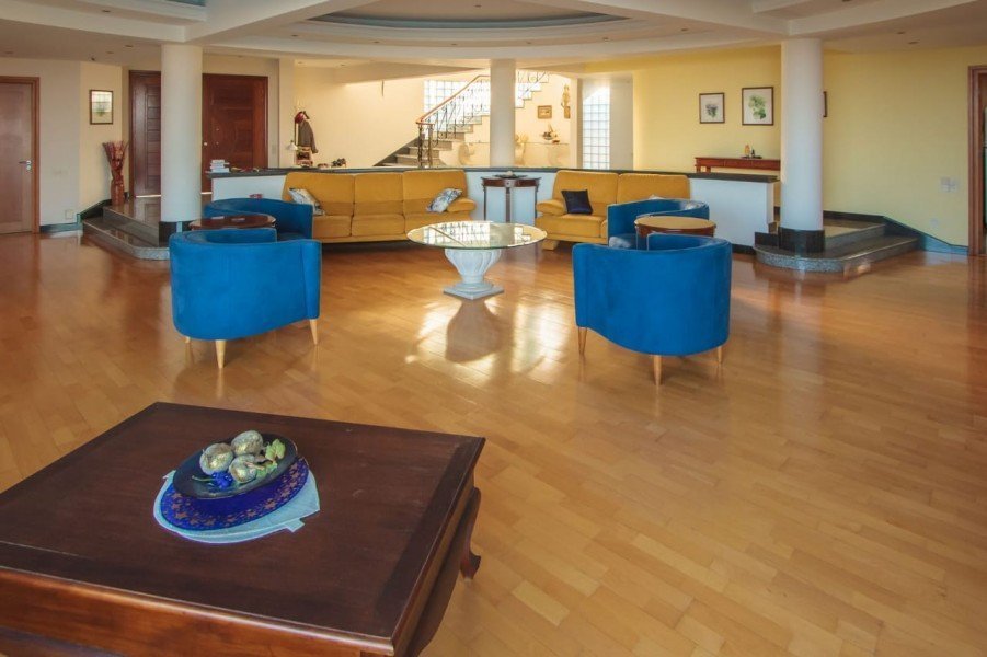 It has 7 bedrooms, 7 bathrooms, 8 toilets, 2 living rooms, 2 kitchens and fire place. At the big covered veranda there is a proper barbeque place. All fully furnished, fully equipped.