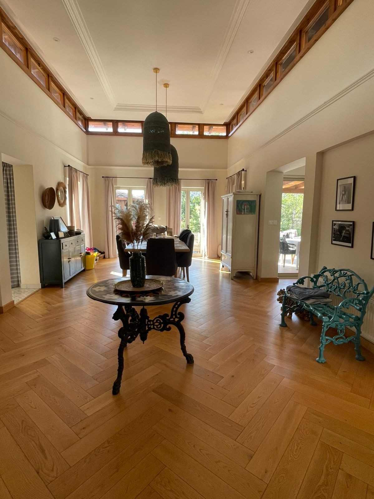 2 Living Rooms with impressive high ceilings and clerestory windows. Marble flooring adds elegance, creating a grand first impression