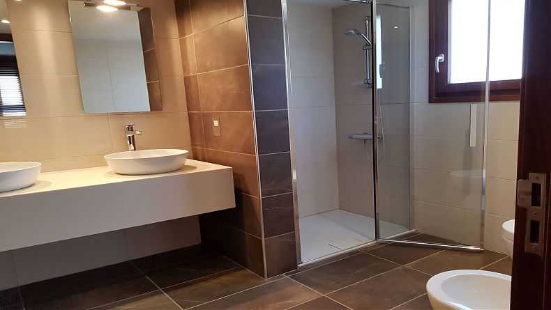 The first floor consists of four bedrooms all with en-suite bathrooms, two of which also have terrace access, a spacious master bedroom with an en-suite private bathroom and walk in closet, also with a private terrace offering spectacular sea views. A kitchenette for all day convenience is also on the upper level.