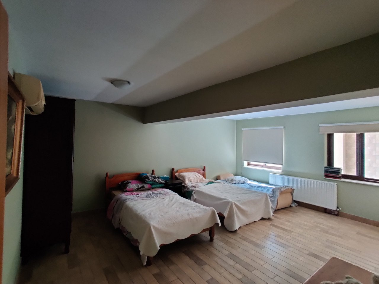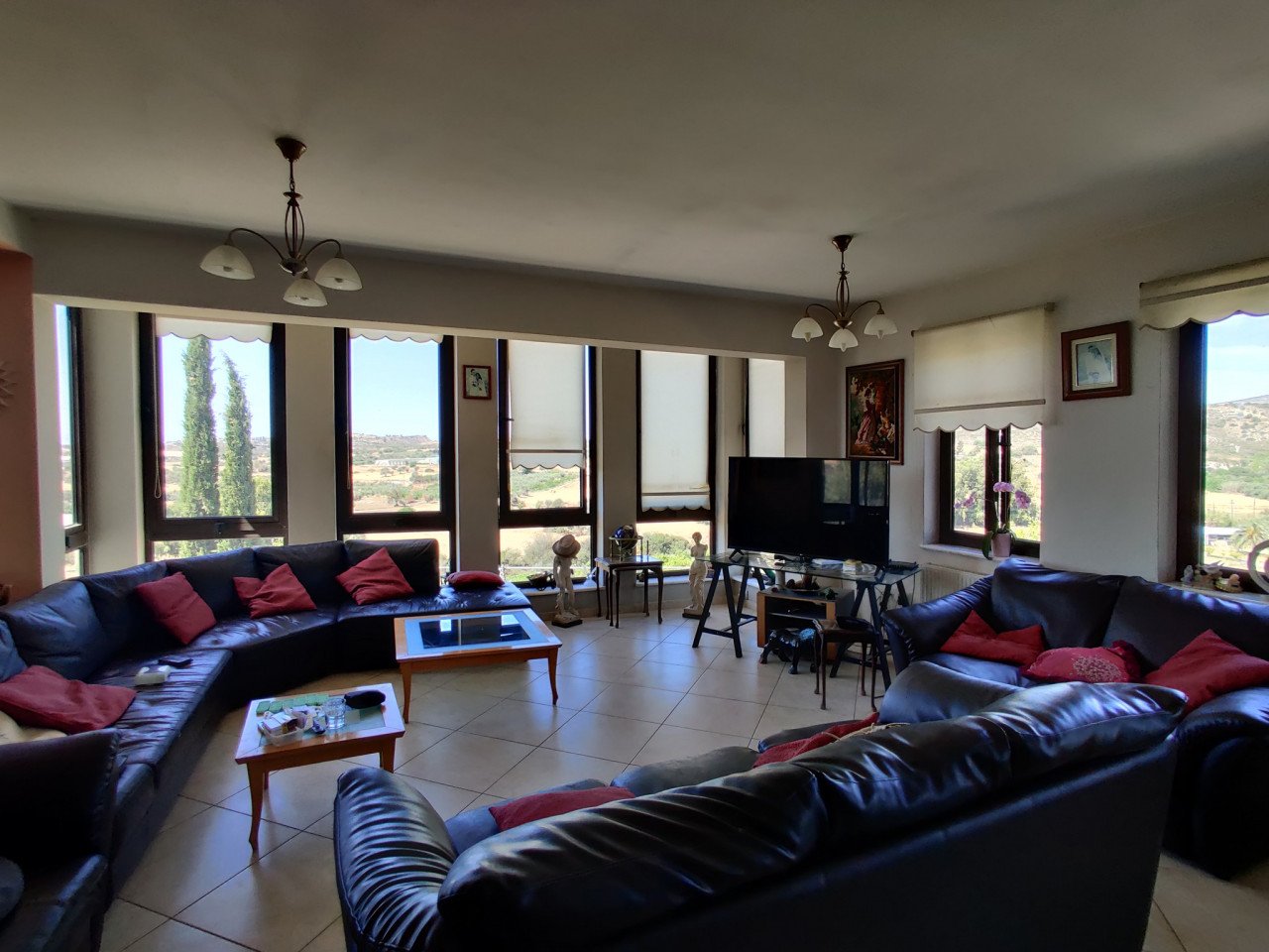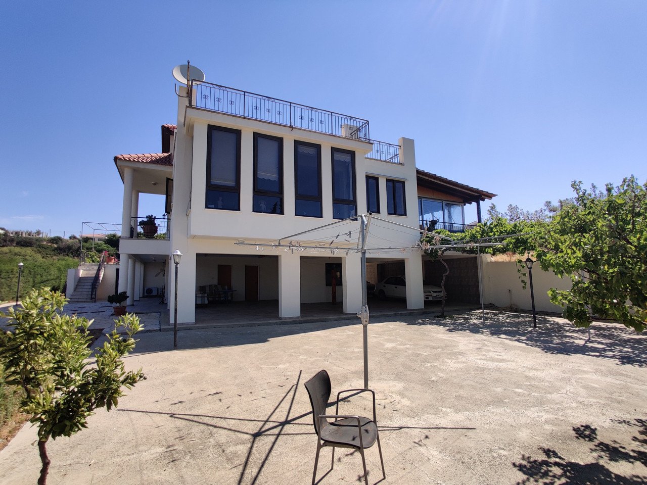 It is built on 3 floors on a 995 sq. m plot. At the ground level, there is a huge living area with separate kitchen and big windows, which offer fantastic panoramic views of the area. There is a basement and an upper floor too.