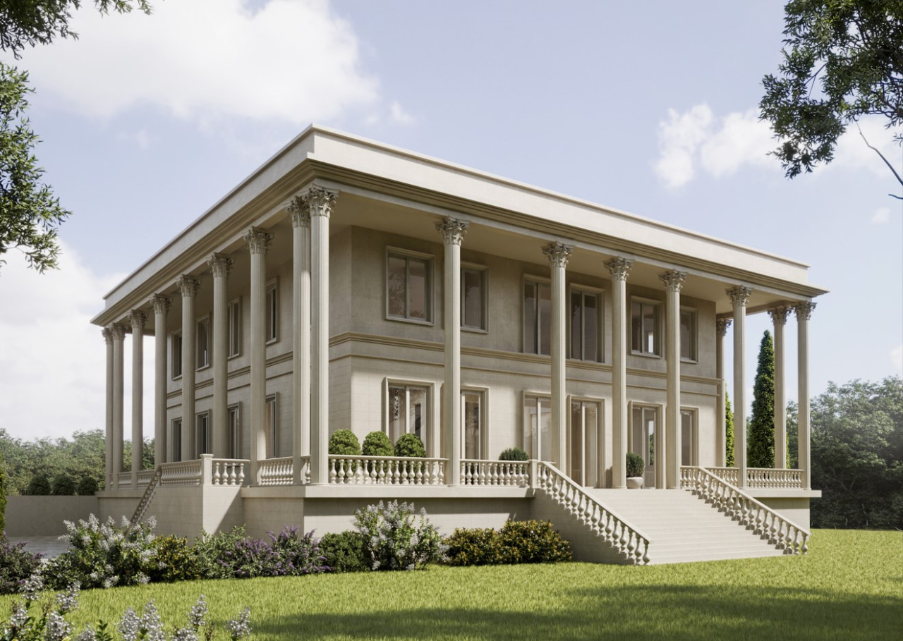 Almost finished house spans an impressive 1,010 sq.m. with a height of 10 meters, offering grandeur and elegance at every turn