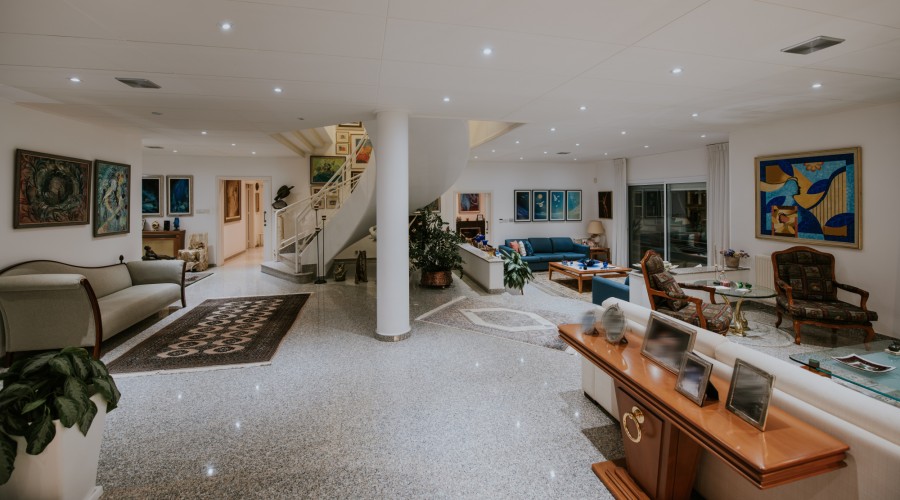 The property offers a breathtaking cityscape view and enjoys convenient proximity to major amenities such as the highway, city center, and seaside. It is situated just a short walk, from the Grammar school. The house is fully equipped with top-tier amenities, ensuring comfort and convenience. These include central heating with independent controls on each floor, a comprehensive telecom system, and integrated music, TV, and satellite systems across multiple levels. Safety features abound with a fire detection system, central alarm, and surveillance setup comprising 16 cameras. Additional highlights include a water softener system, a well-equipped gym, and three covered parking spaces. Outdoor amenities feature a swimming pool equipped with an additional pump, automated systems for groundwater irrigation, and a covered BBQ area complete with grilling facilities and a sound system. The property is seamlessly connected to the city sewage system, enhancing its overall functionality and efficiency.