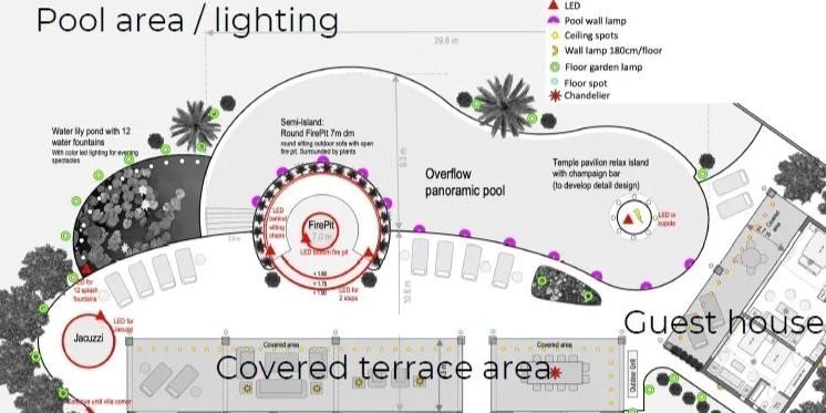 Additional elements which makes the villa luxurious are the home cinema, spa area, wine cellar,panic room, maids room, seperate 2 bedroom guest house, walking fridge and the unique La Cornue kitchen.