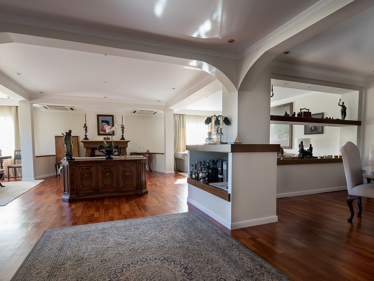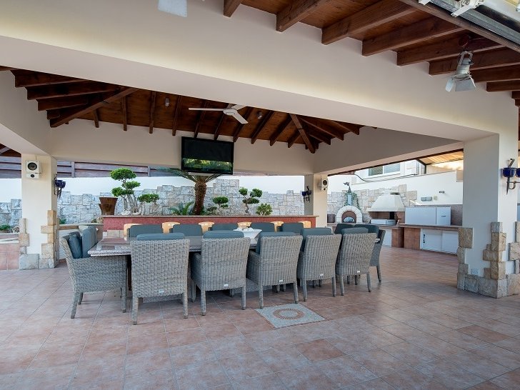 Villas are built to the highest standards, modern, fully equipped kitchen fully air conditioned and underfloor heating ready to move into . They have an impressive private entrance and the premises are surrounded by lush lawns and gardens and tropical plants. The houses sits high on a hill over looking all with commanding with stunning views of the Mediterranean Sea from where ever you stand on the premises.. There is a communal swimming pool with pergola barbeque area .On entering this highly exclusive property the impact is instant. The kitchens are elegant and very stylish.